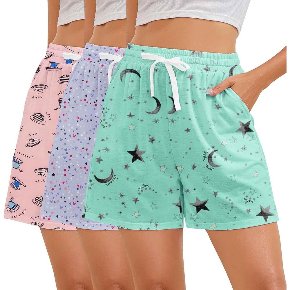 American Trends 3 Pack Pajama Shorts Women Casual Elastic Waist Comfy Printed Sleep Lounge Shorts for Women PJ Bottoms(Set4)
