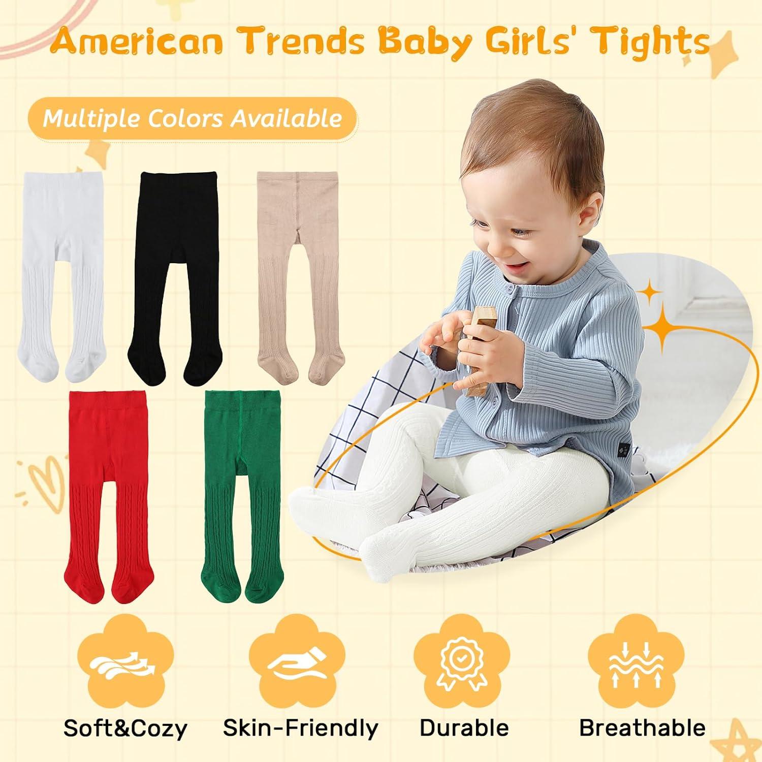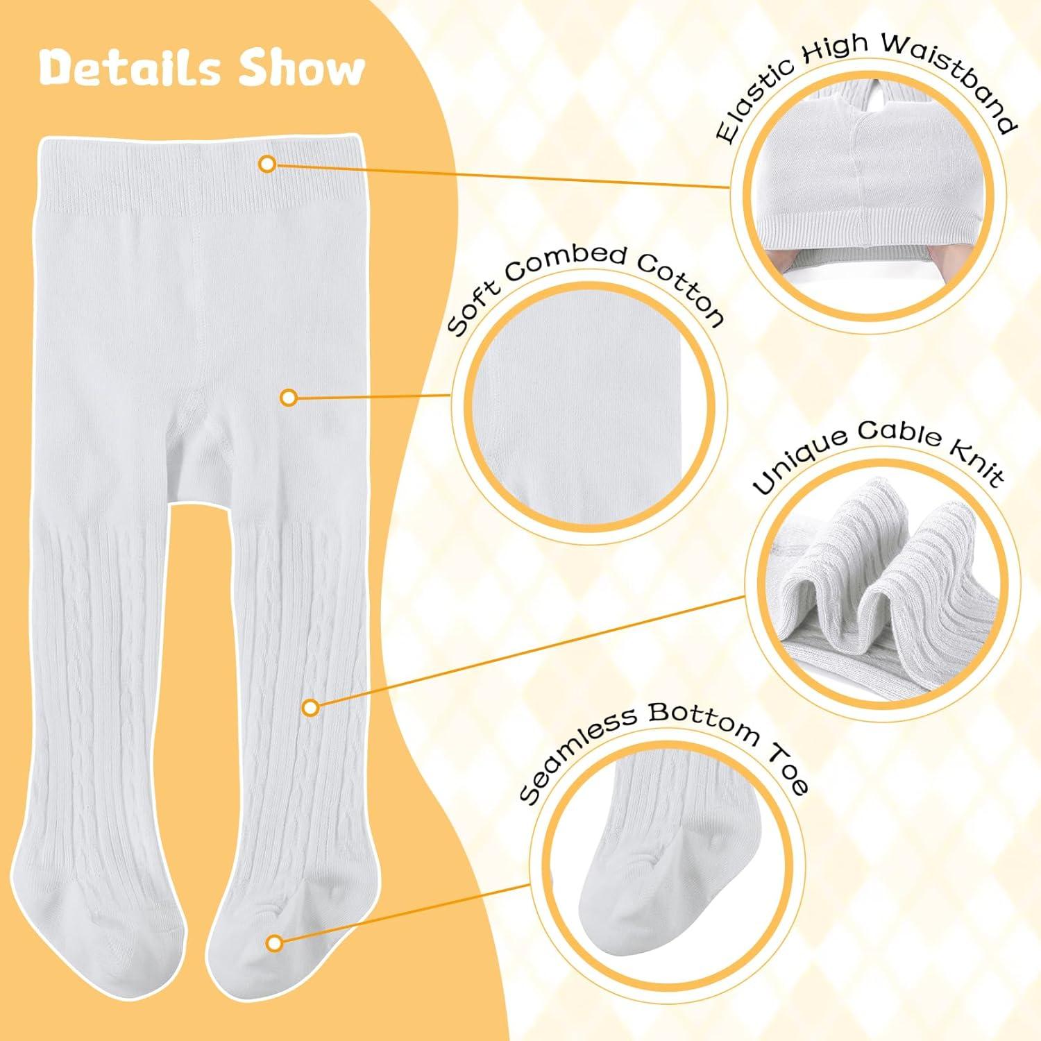 American Trends Cable Knit Tights for Newborn Infant Toddler Cozy Leggings for Baby Girls 0-12M(White)