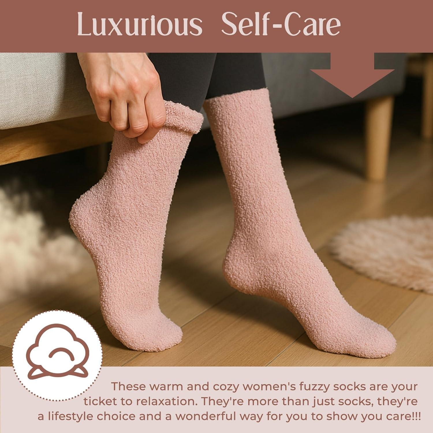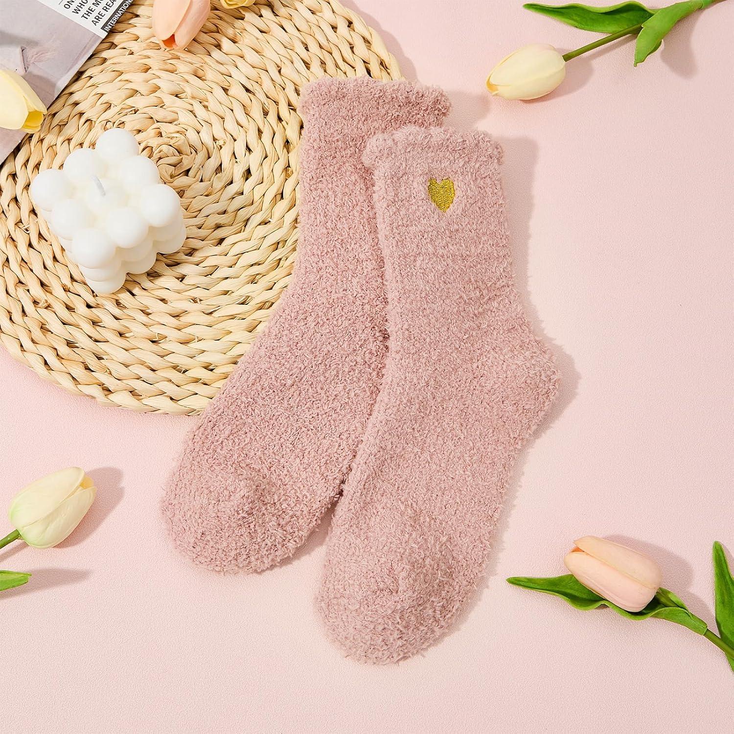 American Trends Coral Fleece Cloud Socks Ultra-Soft Fuzzy Warm Sleep Socks Cozy Unisex Gifts for Birthday Self-Care(Pink a)