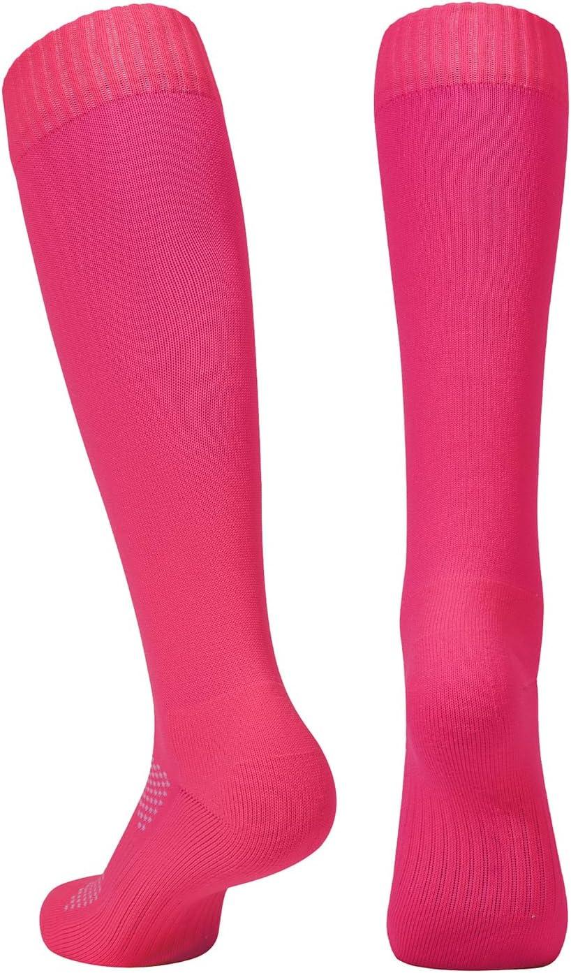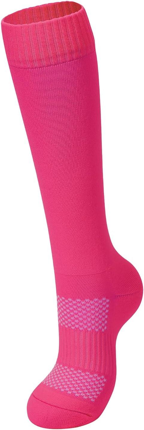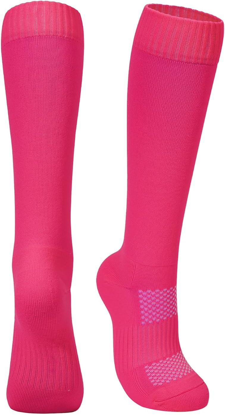 American Trends Girls Softball Socks 6 Pairs Baseball Softball Socks for Girls Youth Knee High Soccer Socks(Rose Red)
