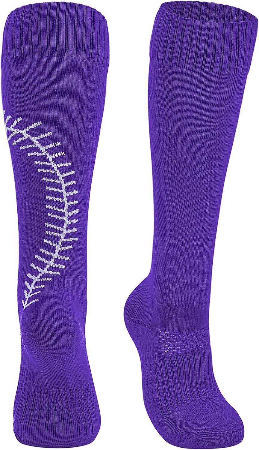 American Trends Girls Softball Socks with Stitches 3 Pairs Youth Athletic Socks for Soccer, Baseball, Softball, Football(Purple)