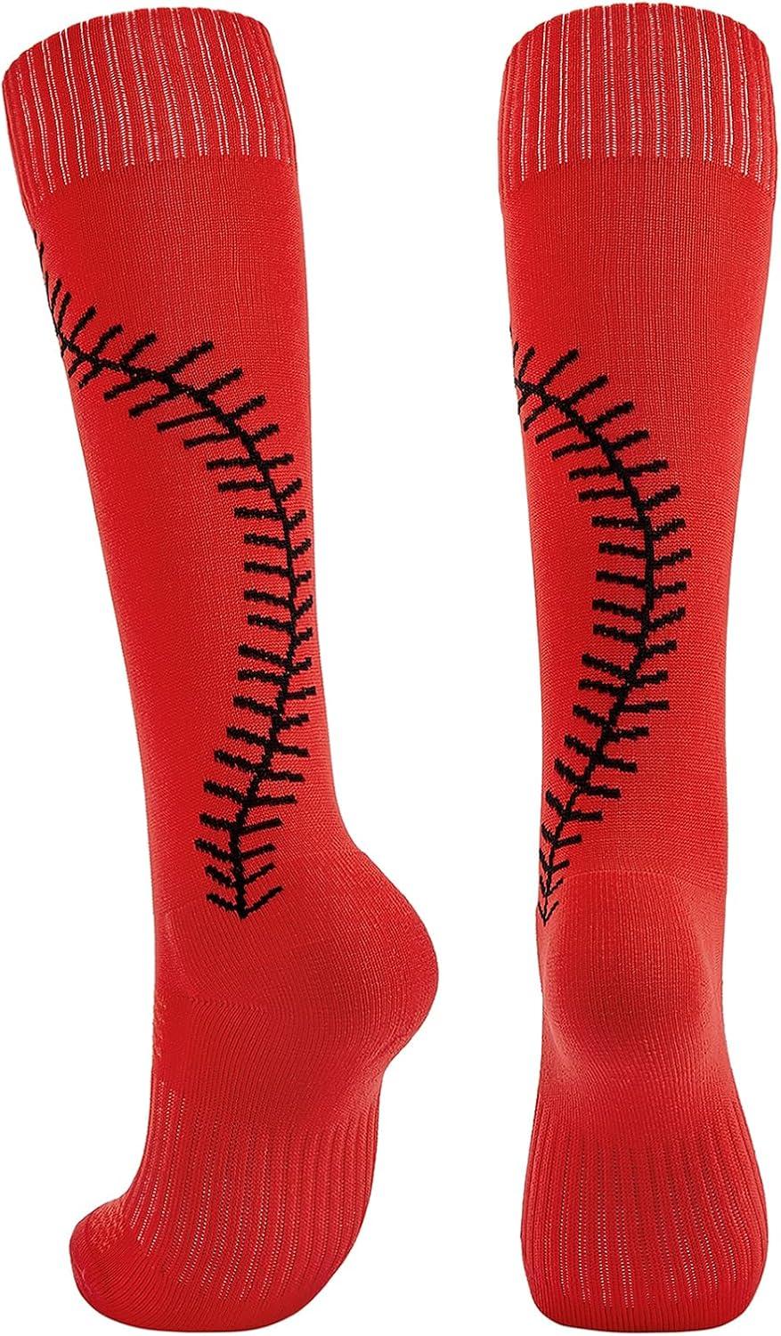 American Trends Girls Softball Socks with Stitches 3 Pairs Youth Athletic Socks for Soccer, Baseball, Softball, Football(Red)