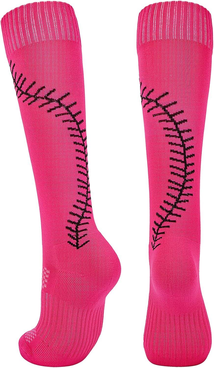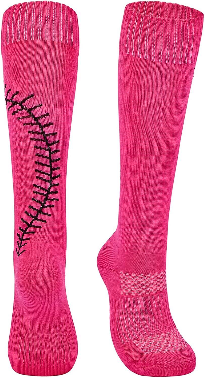 American Trends Girls Softball Socks with Stitches 3 Pairs Youth Athletic Socks for Soccer, Baseball, Softball, Football(Rose Red)
