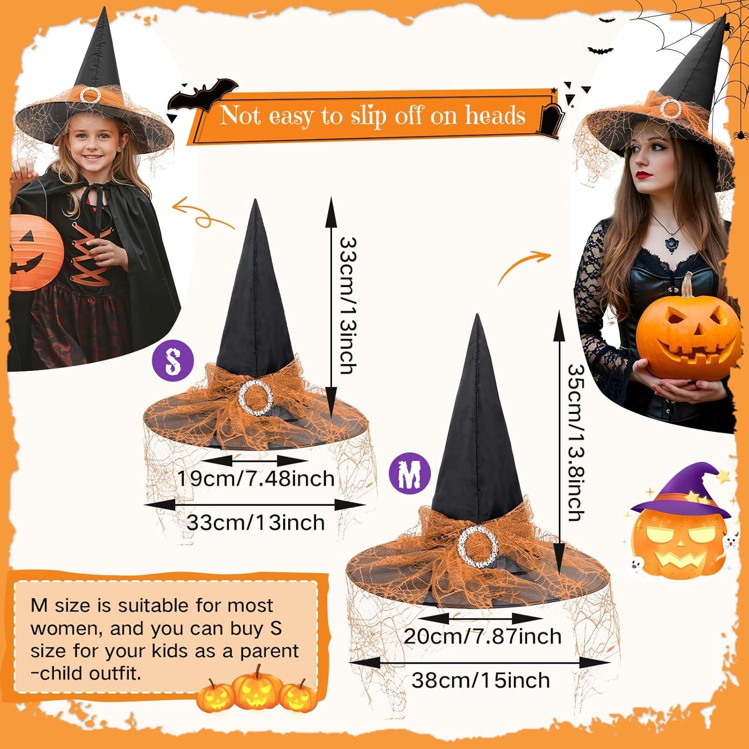 American Trends Halloween Witch Hats for Women Adult Lace Kids Witch Hat Halloween Costume Accessories(Lace Orange)