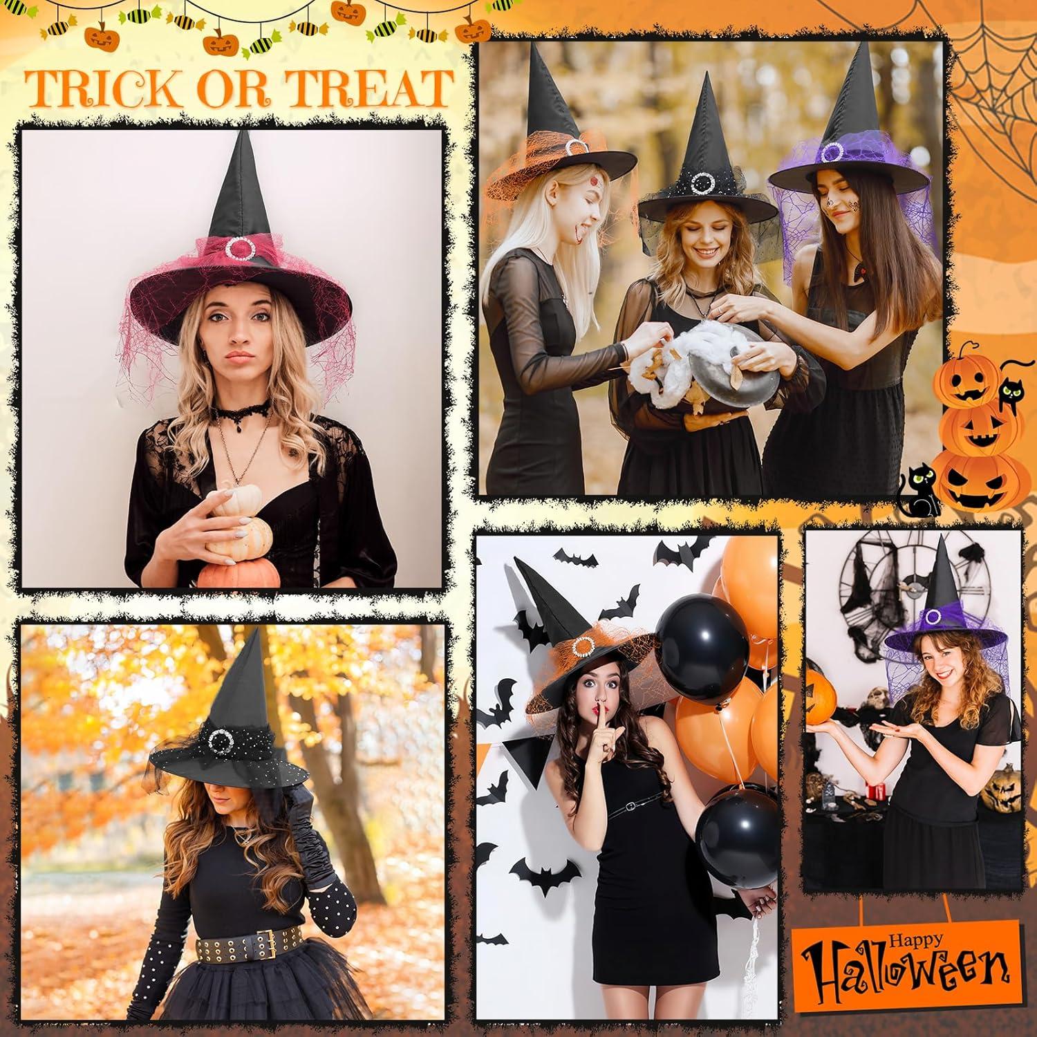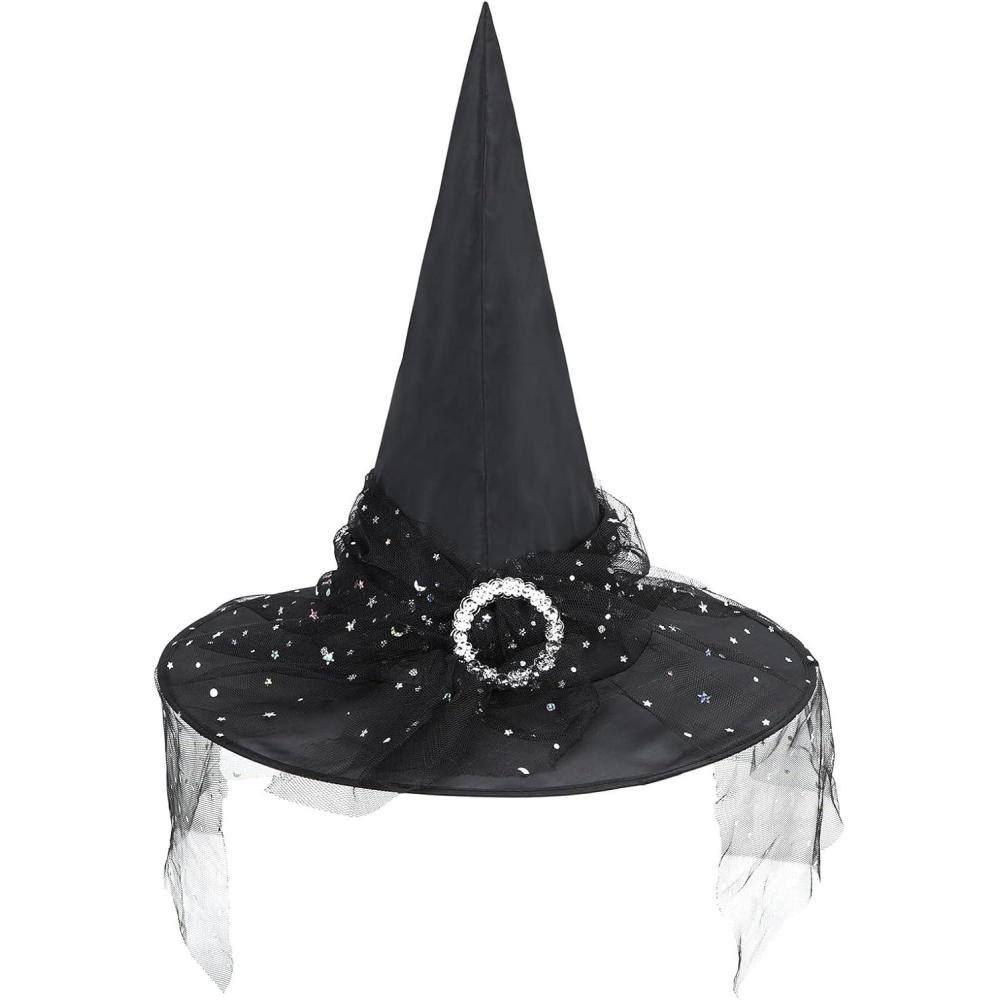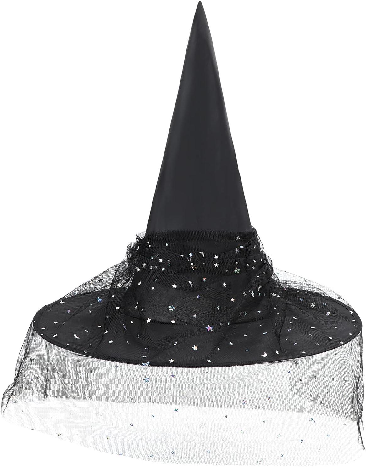 American Trends Halloween Witch Hats for Women Adult Lace Kids Witch Hat Halloween Costume Accessories(Lace Black Starlight)