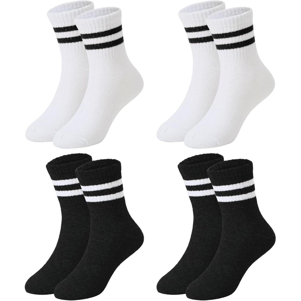 American Trends Kids Athletic Boys Girls Crew Socks Toddler Striped Socks School Uniform Socks 4 Pairs 4-12 Years(Black and White)