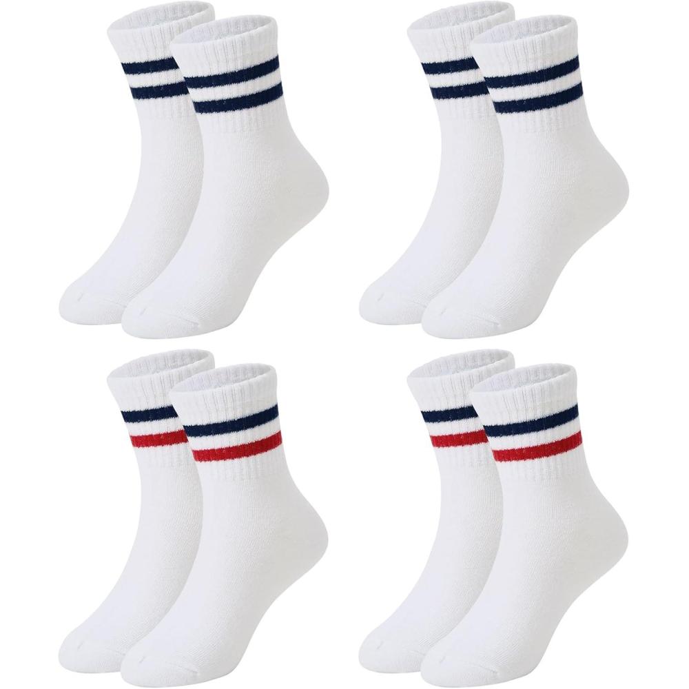 American Trends Kids Athletic Boys Girls Crew Socks Toddler Striped Socks School Uniform Socks 4 Pairs 4-12 Years(Navy Blue / Red)