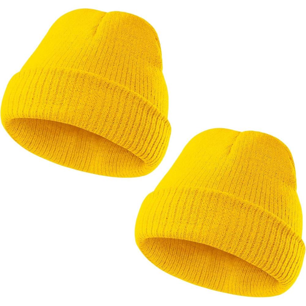 American Trends Kids Beanie Warm Knit Beanie Hats Boys Girls Winter Hat Soft Slouchy Hats for Kids(2 Pack Yellow)