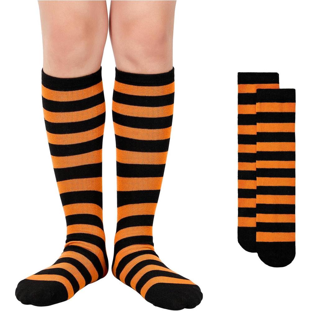 American Trends Kids Knee High Socks Youth Seamless Cotton Long Socks Girls Boys Accessories for School Spirit Week Crazy Day(1 Pack Striped Black Orange)