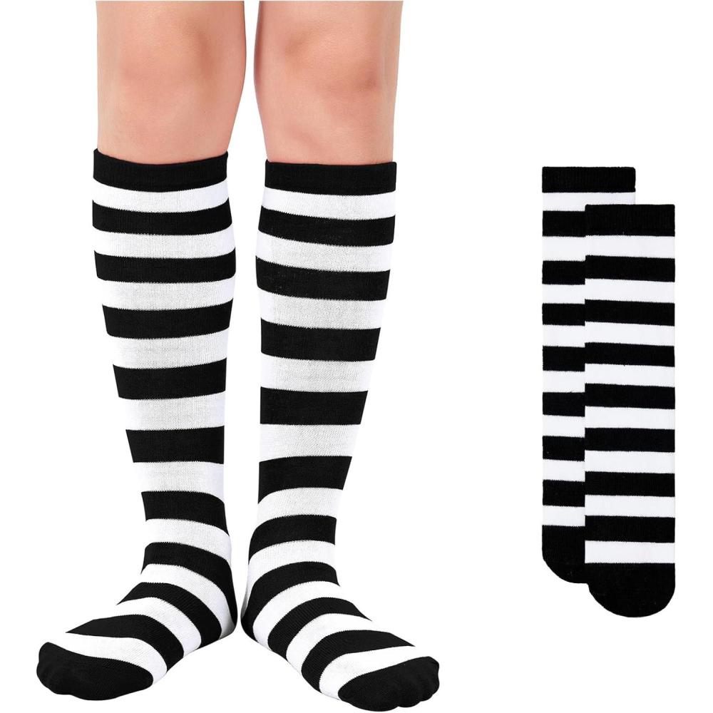 American Trends Kids Knee High Socks Youth Seamless Cotton Long Socks Girls Boys Accessories for School Spirit Week Crazy Day(1 Pack Striped Black White)
