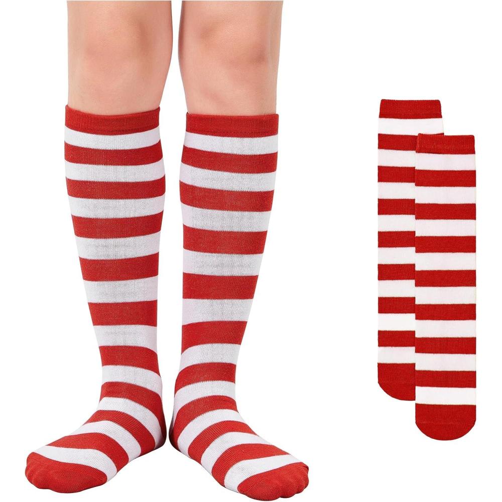 American Trends Kids Knee High Socks Youth Seamless Cotton Long Socks Girls Boys Accessories for School Spirit Week Crazy Day(1 Pack Striped Red White)