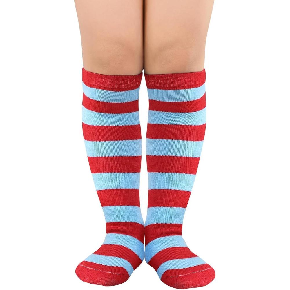 American Trends Kids Knee High Socks Youth Seamless Cotton Long Socks Girls Boys Accessories for School Spirit Week Crazy Day(1 Pack Stripes Red Blue)