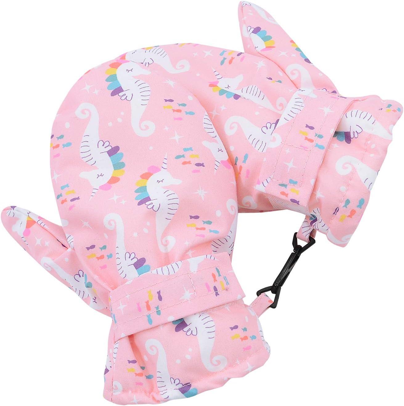 American Trends Lined Fleece Toddler Mittens Winter Warm Gloves Child Ski Waterproof Snow Baby Mittens for Boys Girls(A Pink Seahorse)
