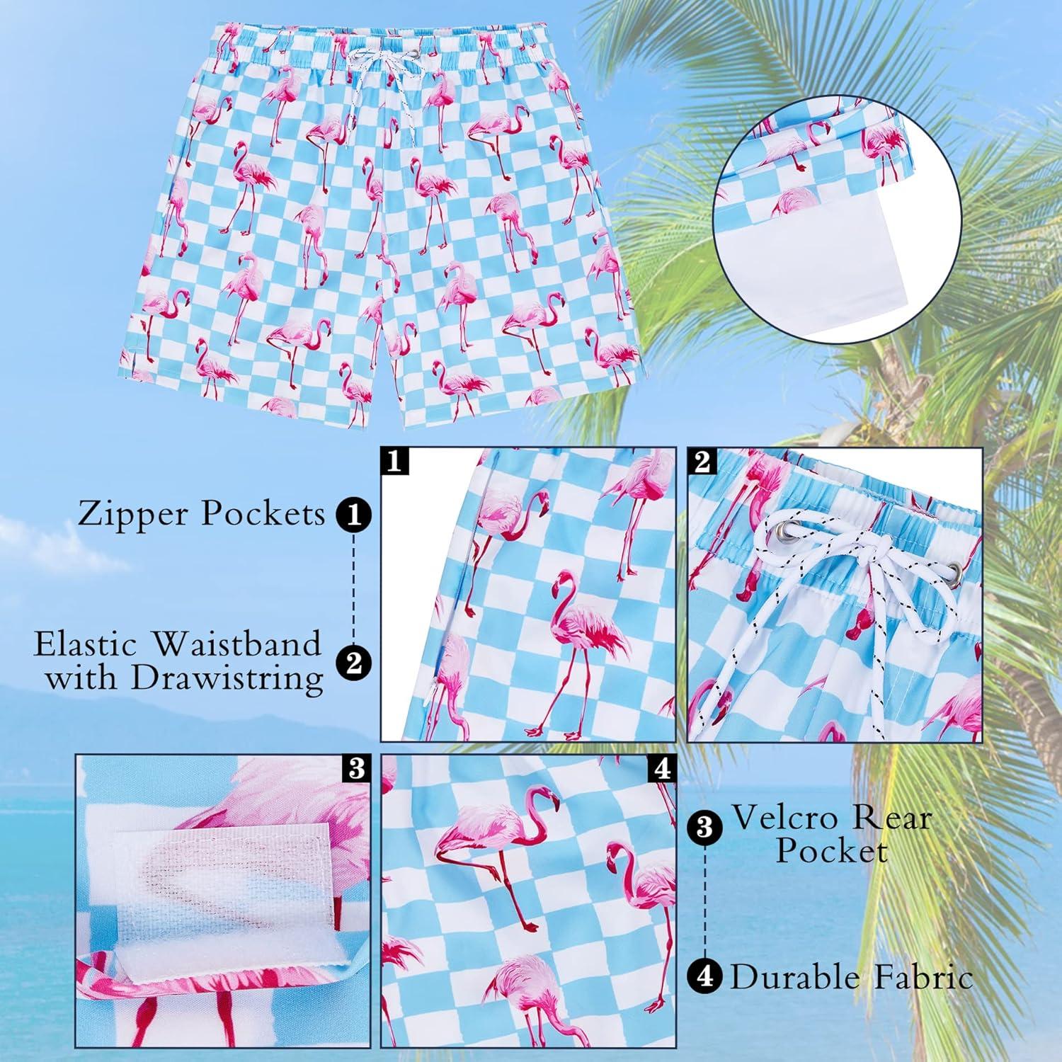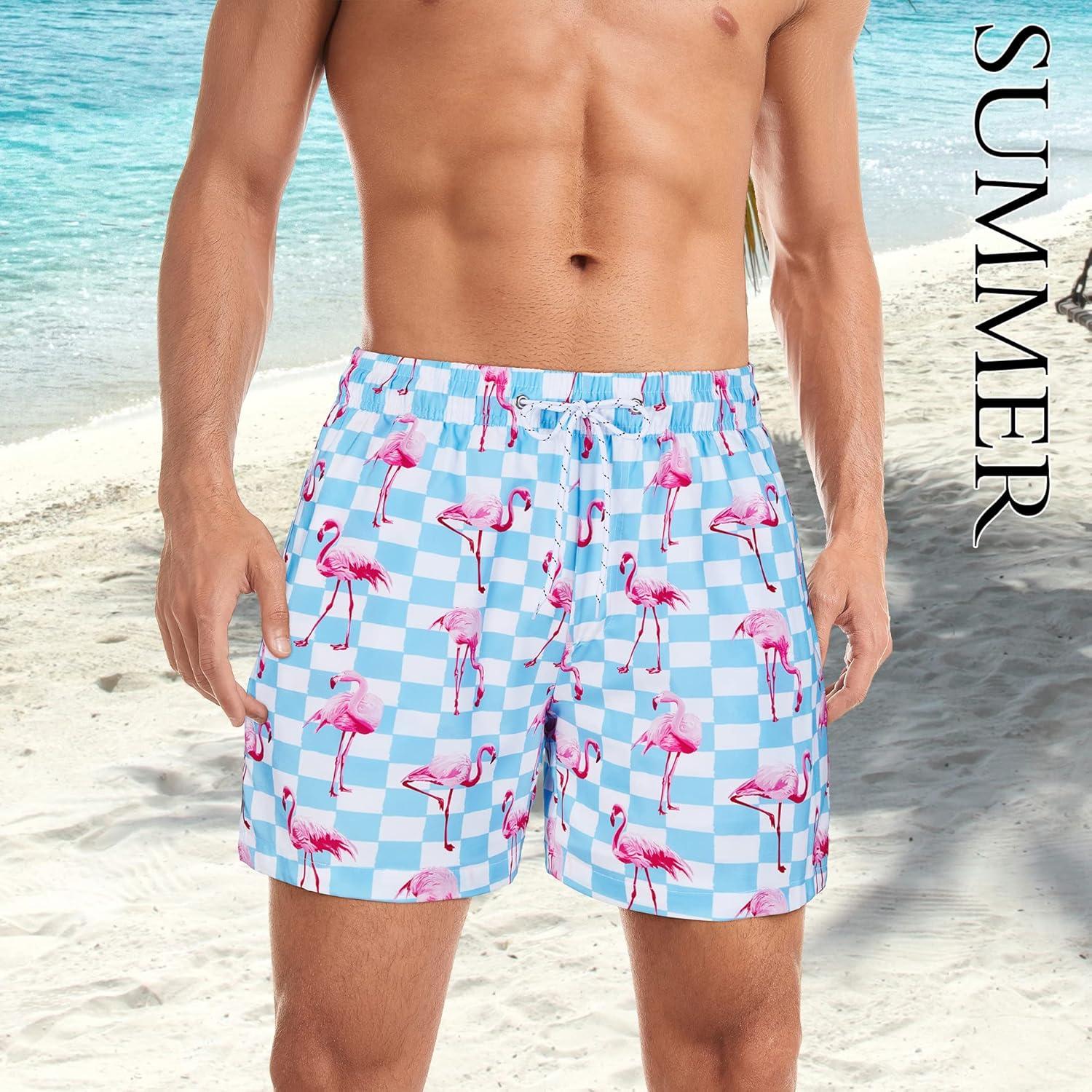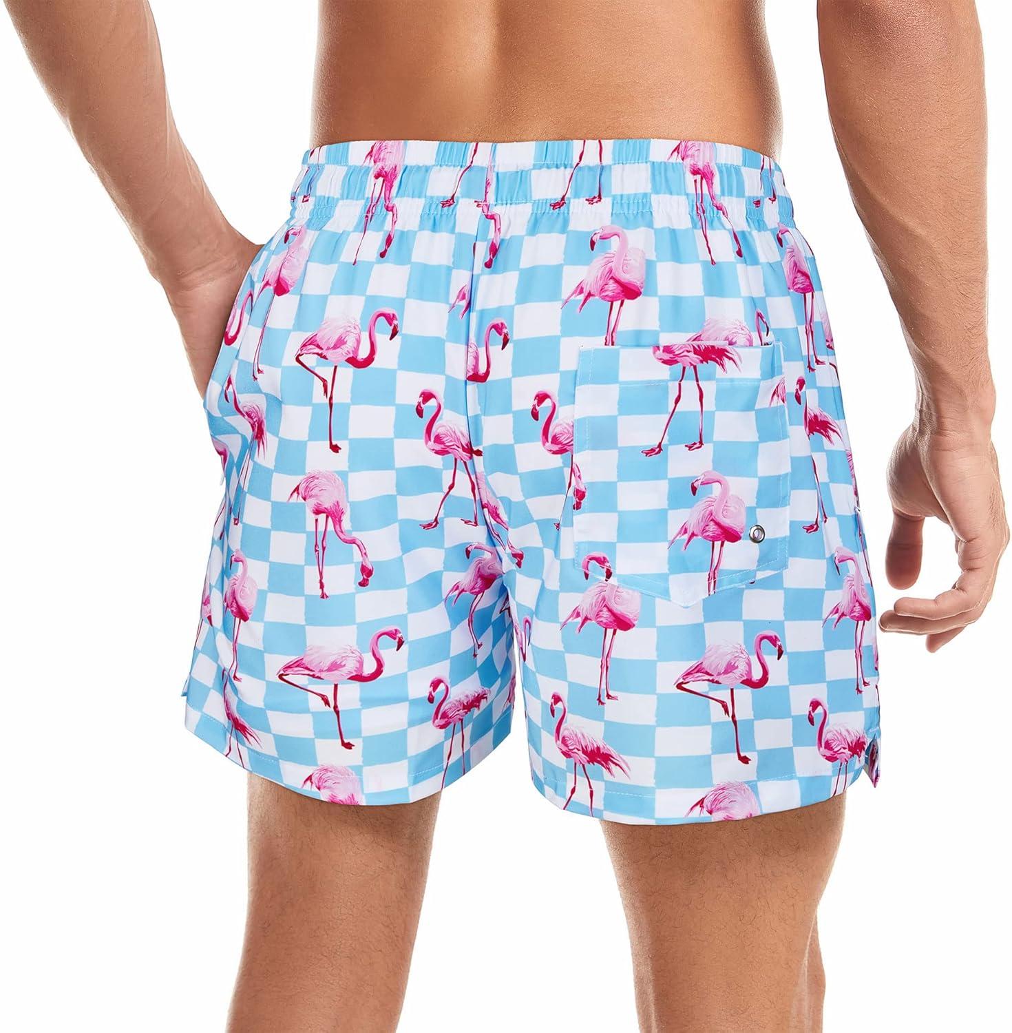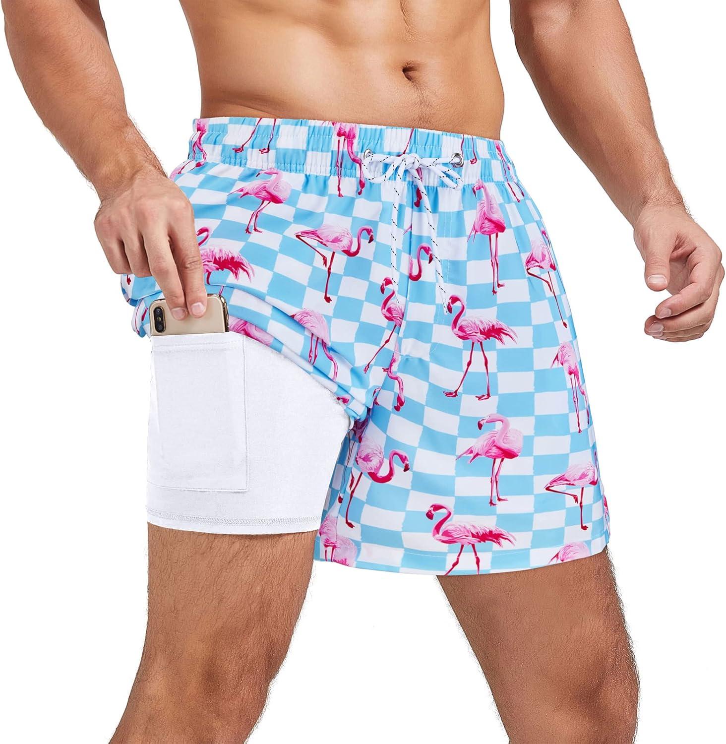 American Trends Mens Swim Trunks with Compression Liner Board Shorts for Men Quick Dry Swimsuits Bathing Suit Swimwear M-XXL(Flamingo)