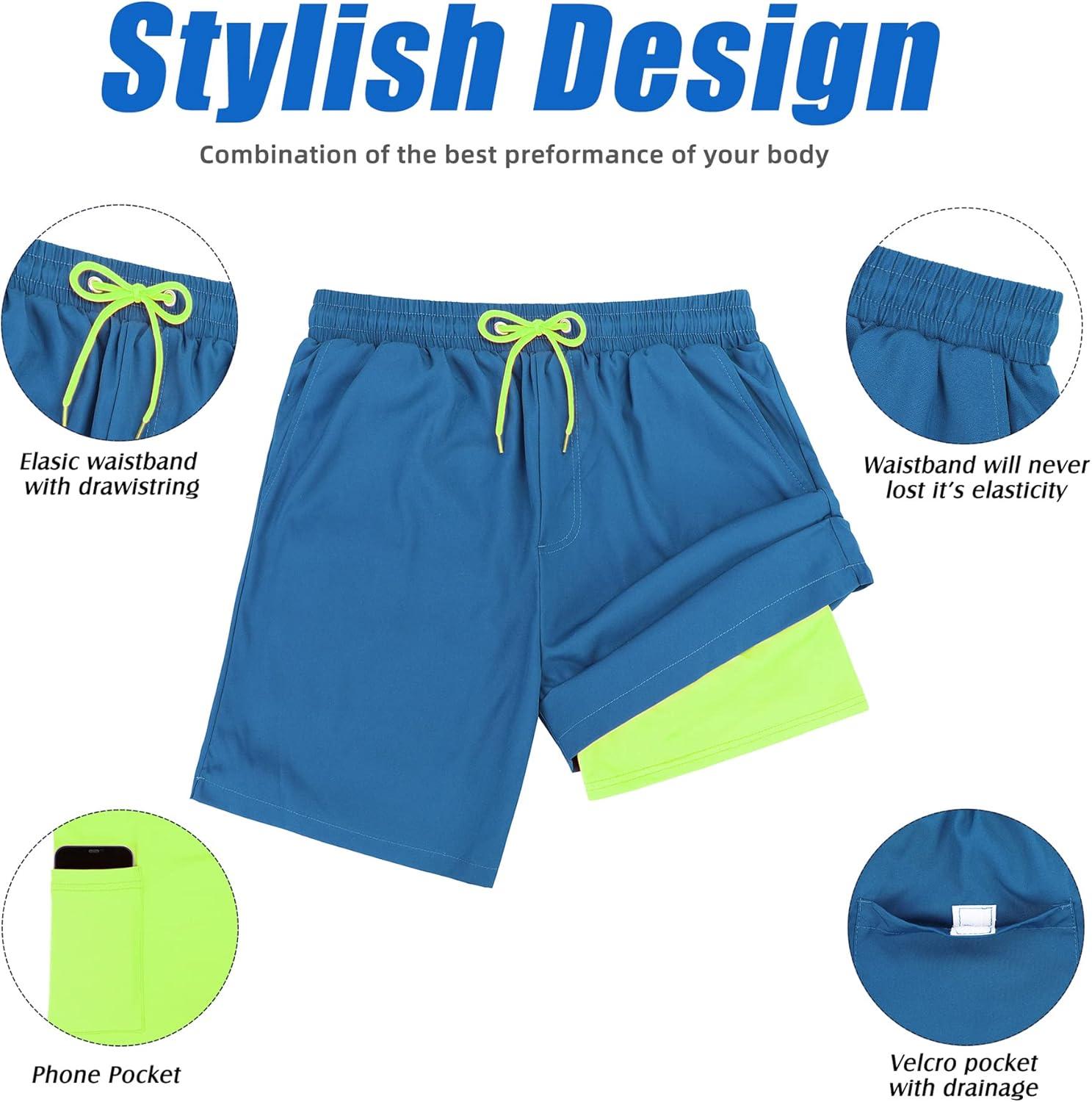 American Trends Mens Swim Trunks with Compression Liner Board Shorts for Men Quick Dry Swimsuits Bathing Suit Swimwear M-XXL(Sky Blue)