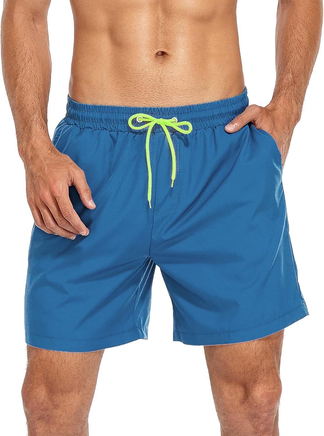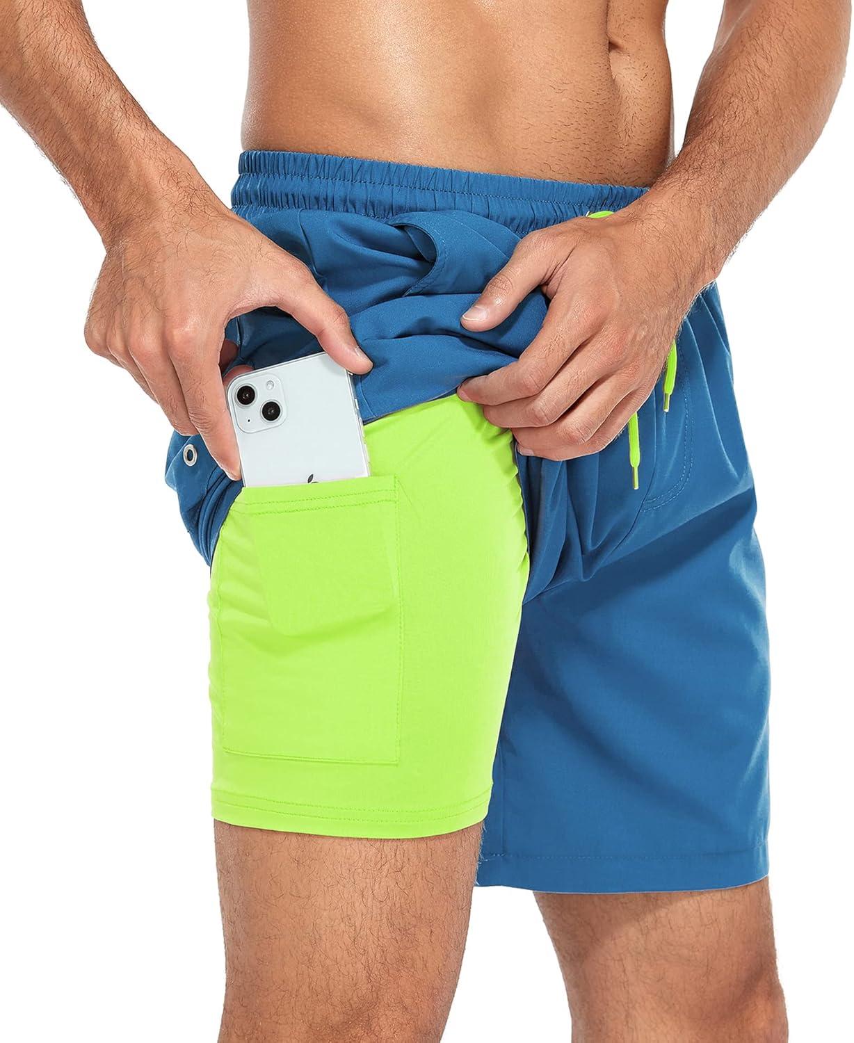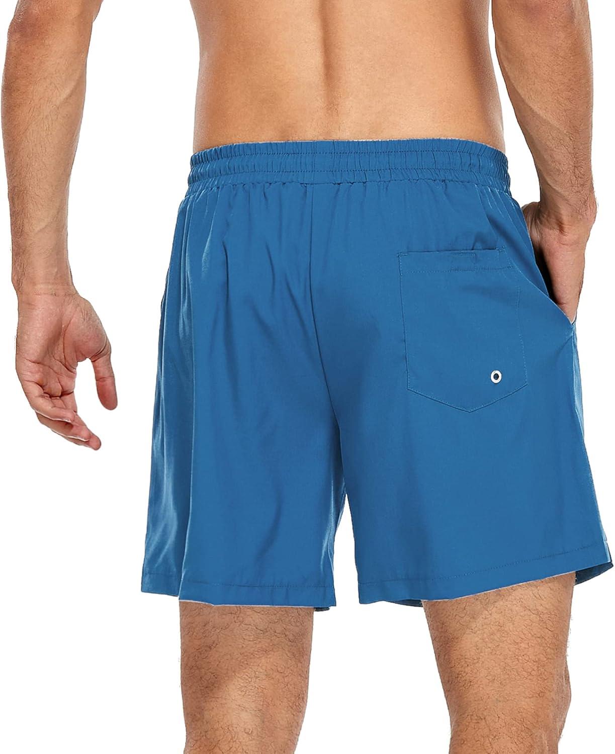 Swim Shorts with Pockets:Two side pockets and back pocket not only store your belongings but also accelerate water flow for quick drying. Moreover, board shorts have a liner pocket for extra storage.