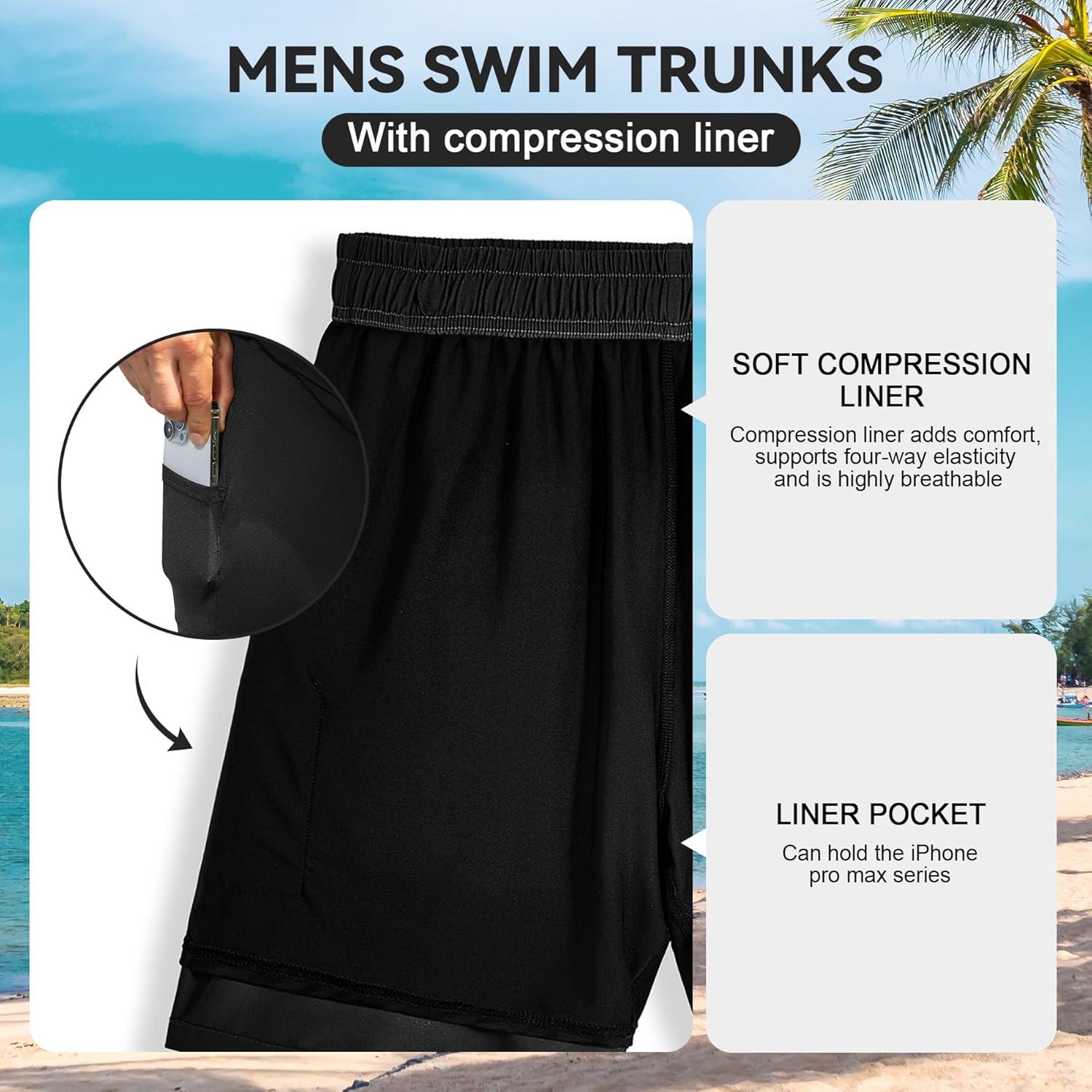 Not Easy to Wear:Wearing swim trunks with compression liner can make you very comfortable, the shorts with compression breif will not wear out and can be worn all day without discomfort