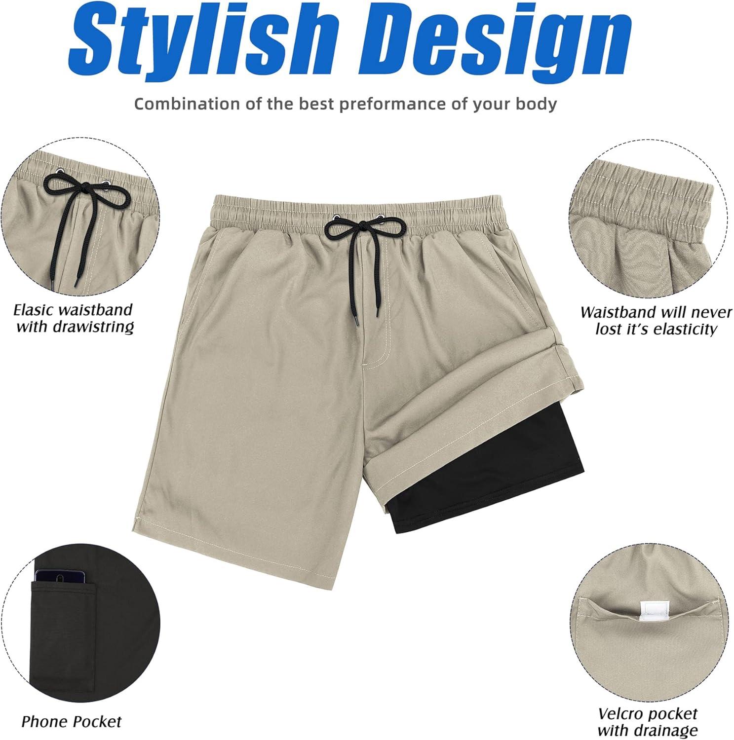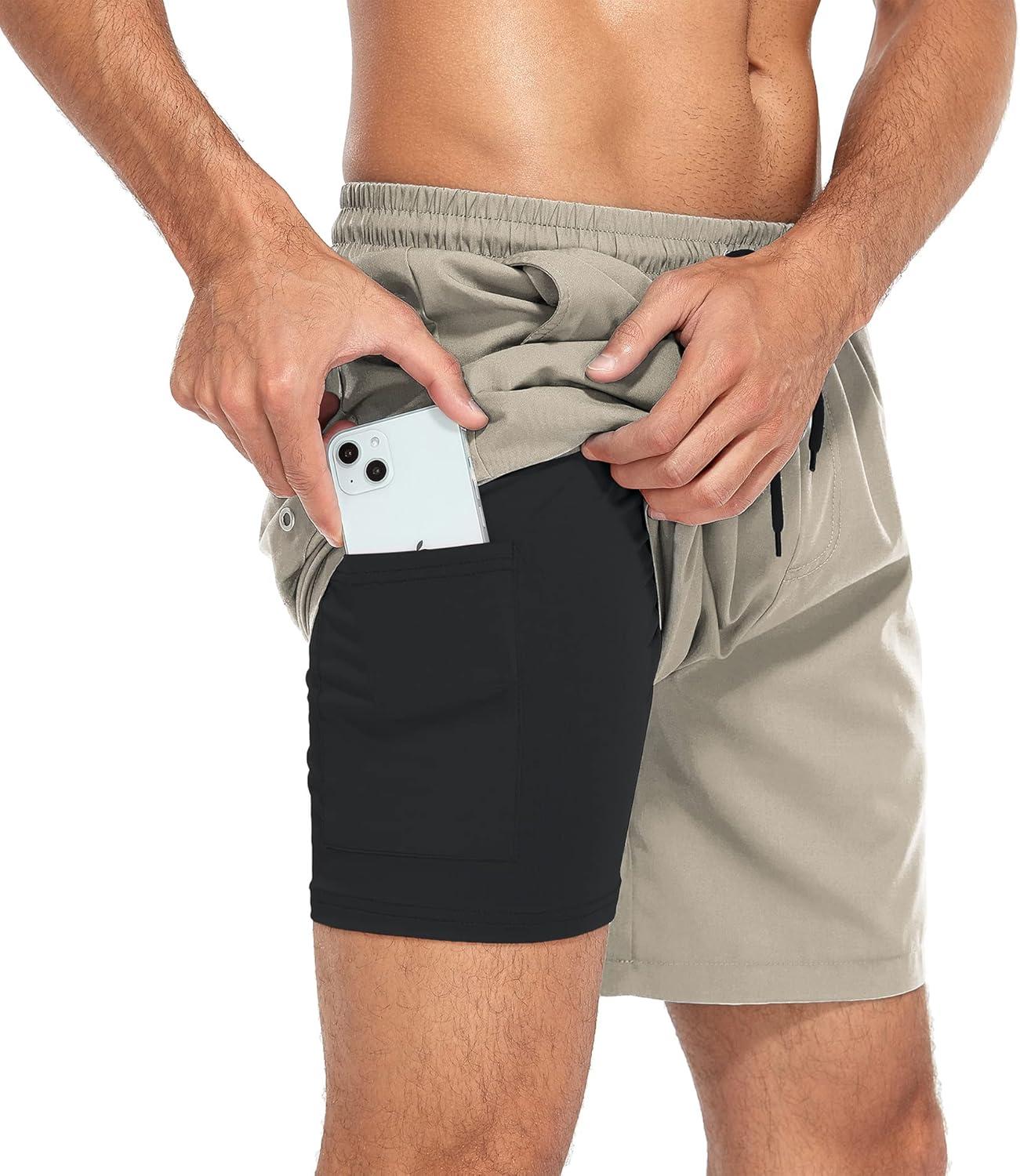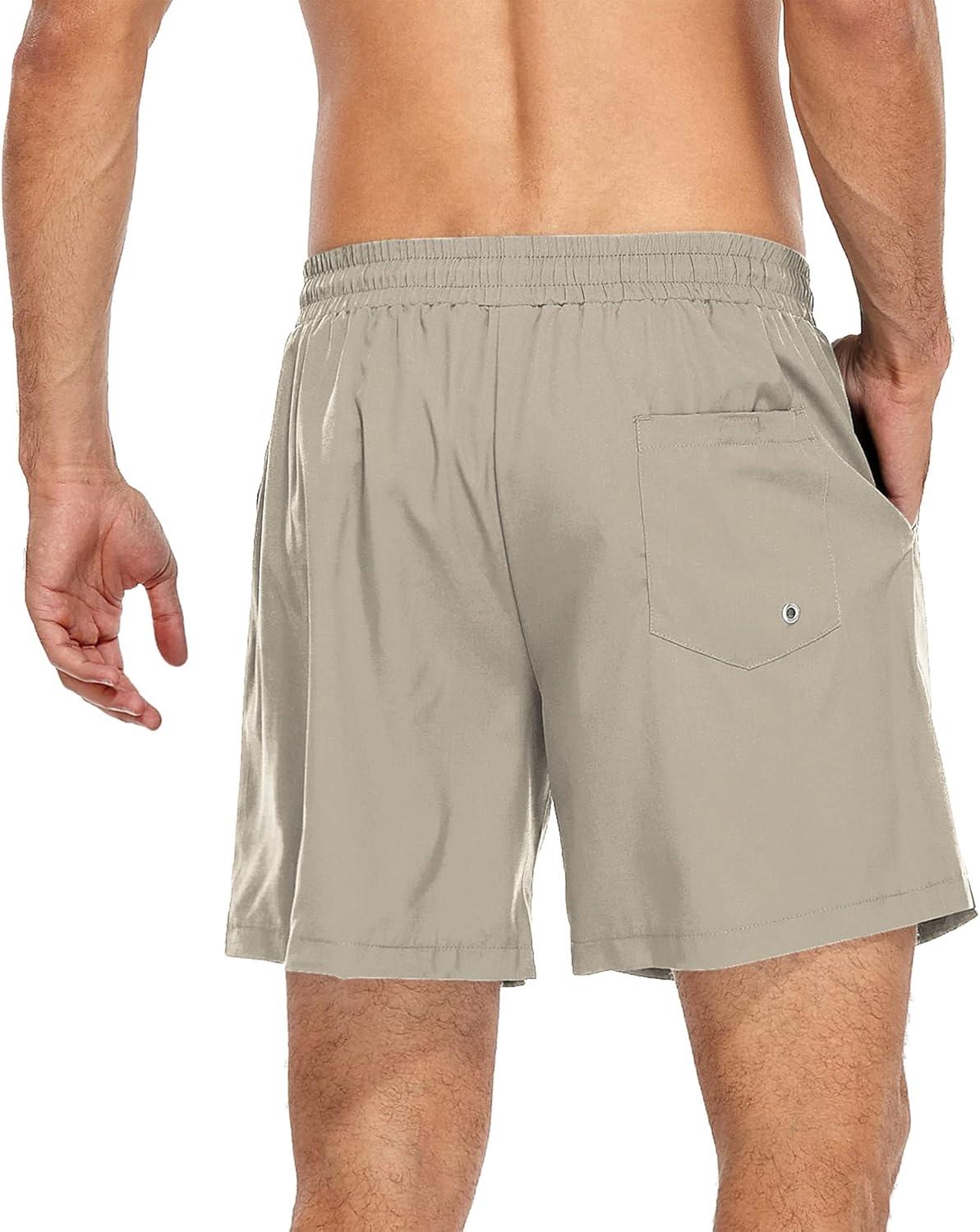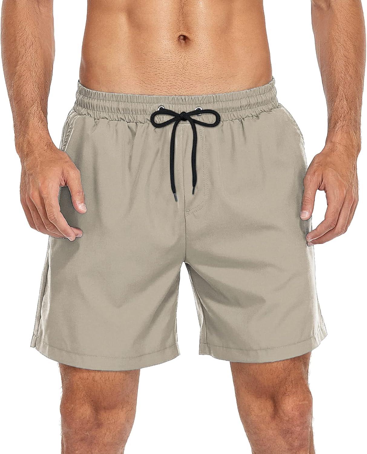 American Trends Mens Swim Trunks with Compression Liner Qucik Dry Board Shorts 2 in 1 Men’s Swimsuits(7″khaki Green)