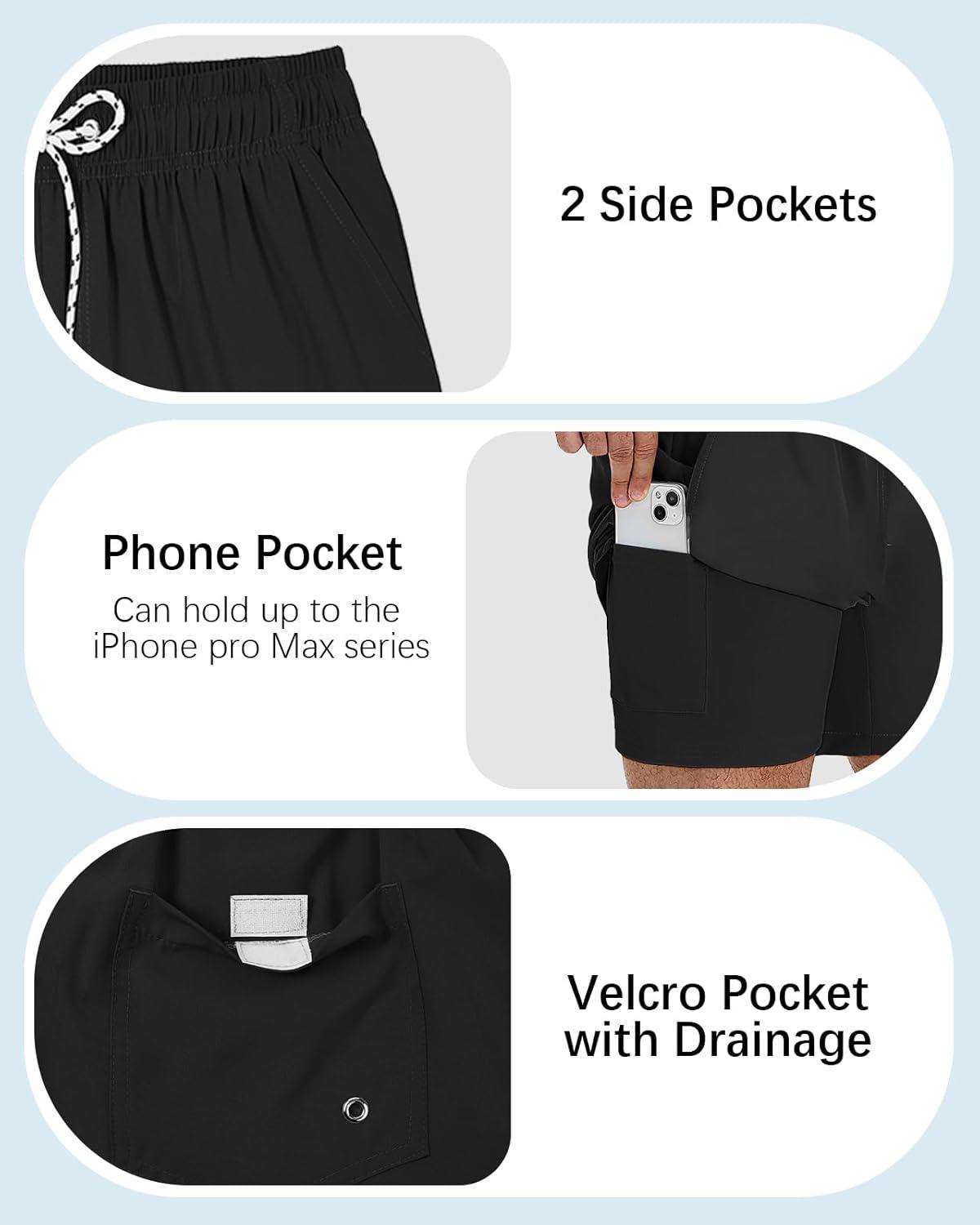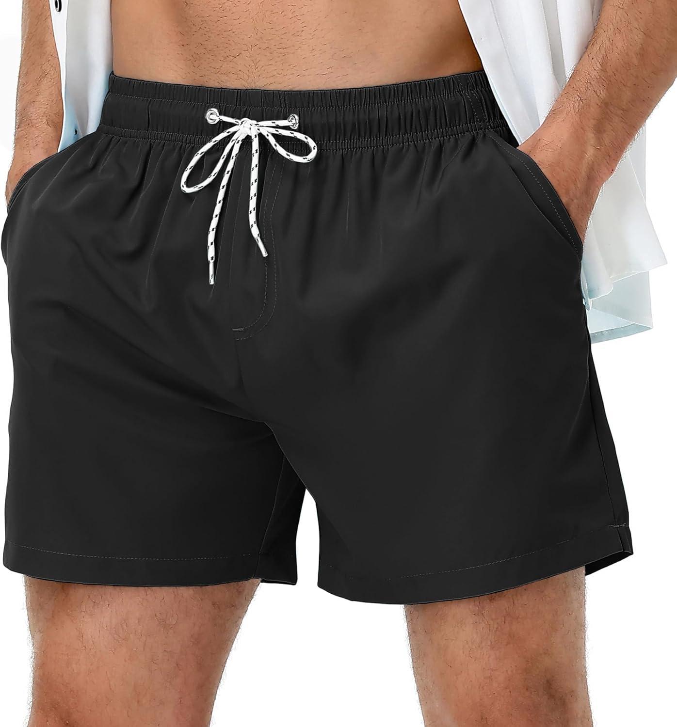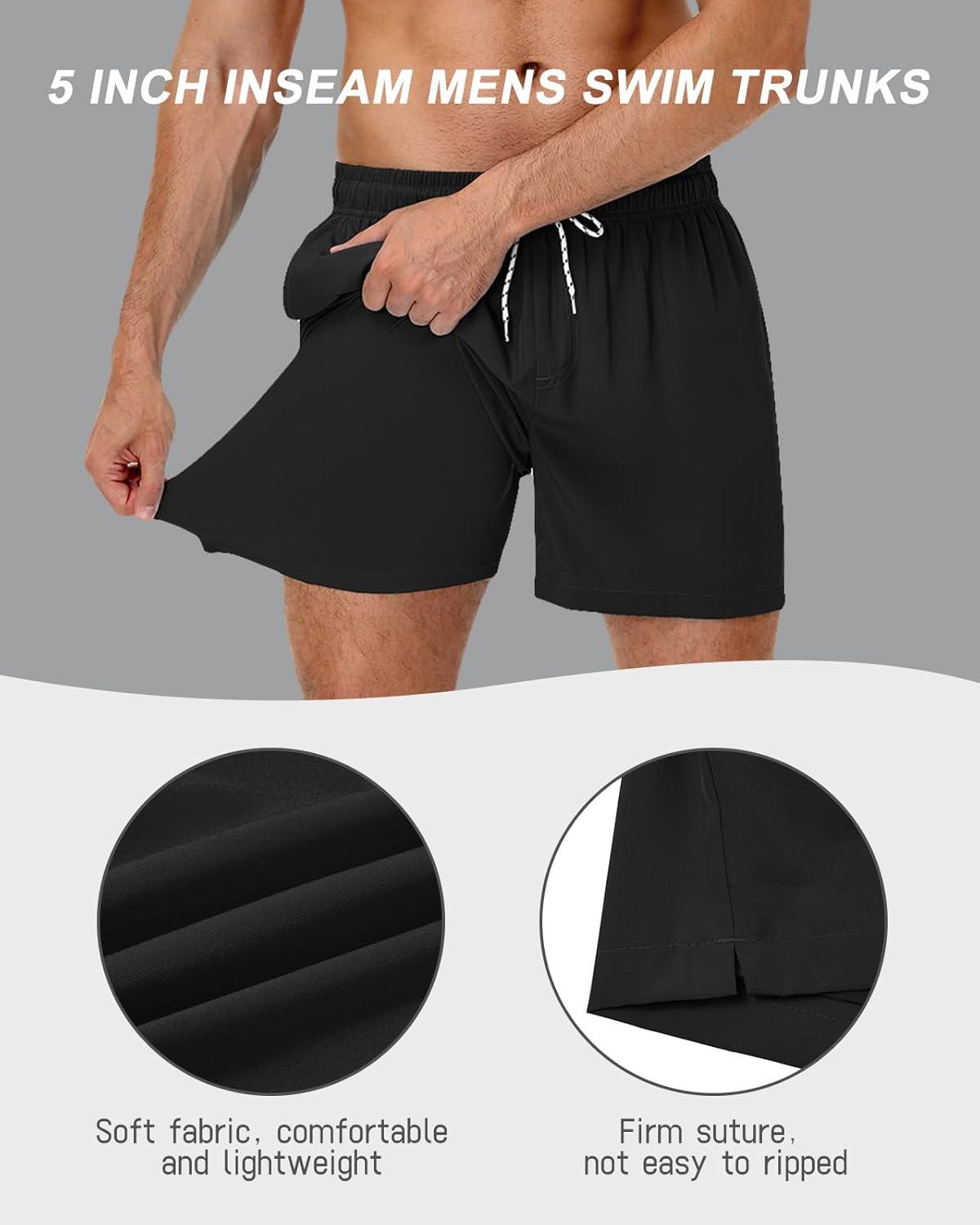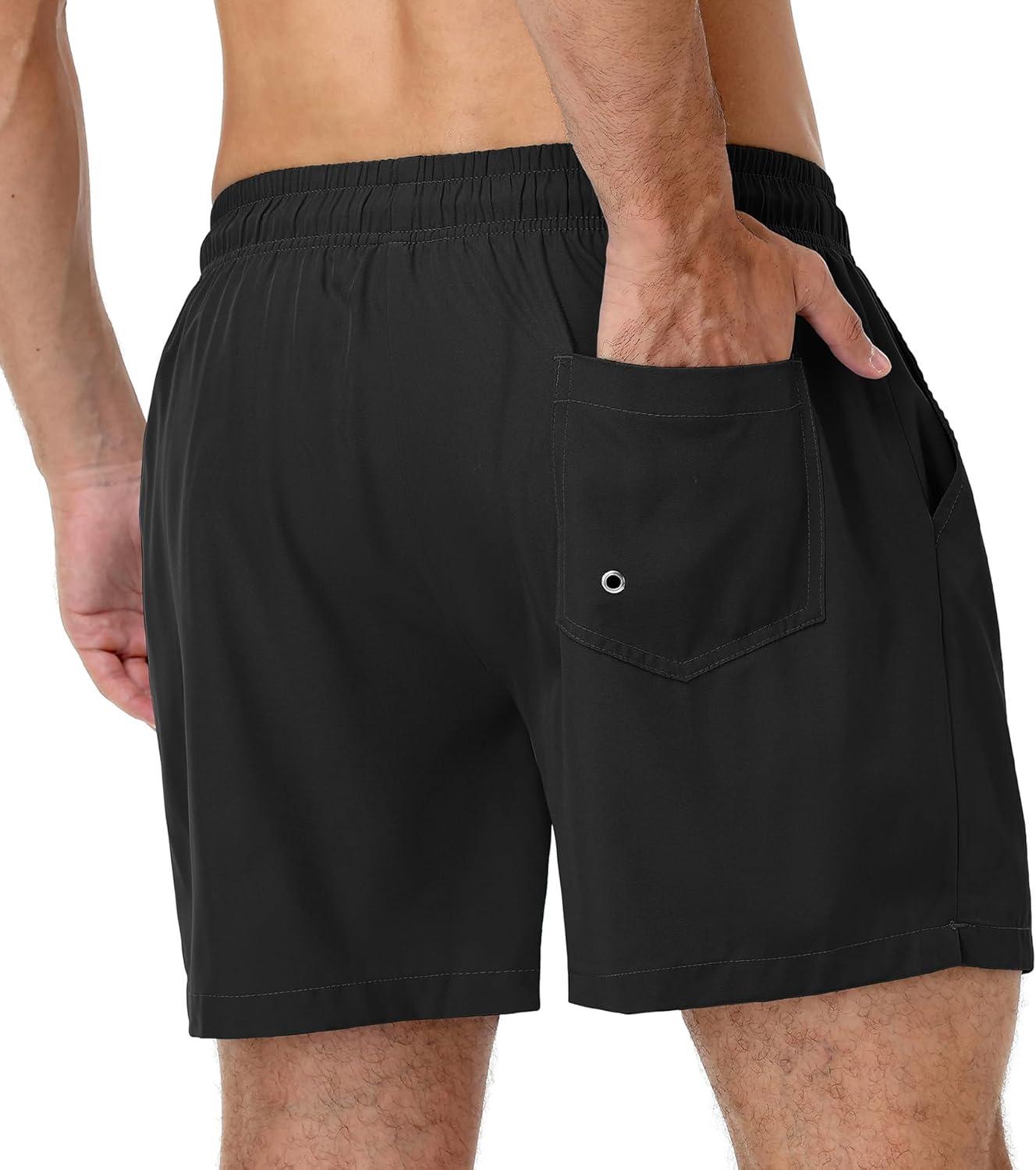 American Trends Mens Swim Trunks with Compression Liner Qucik Dry Board Shorts 2 in 1 Men’s Swimsuits(A Black)