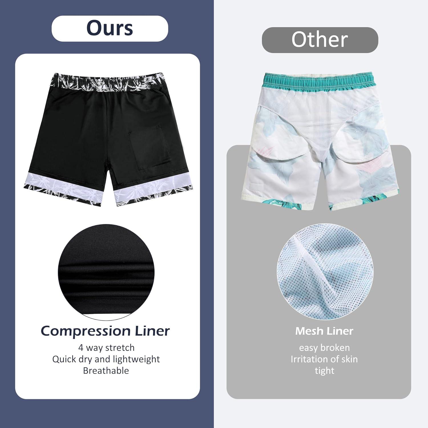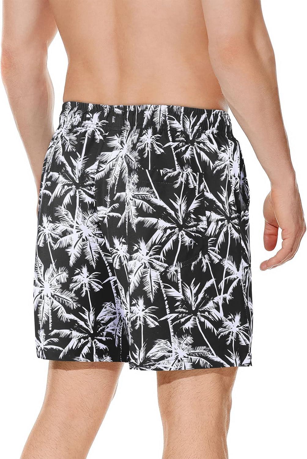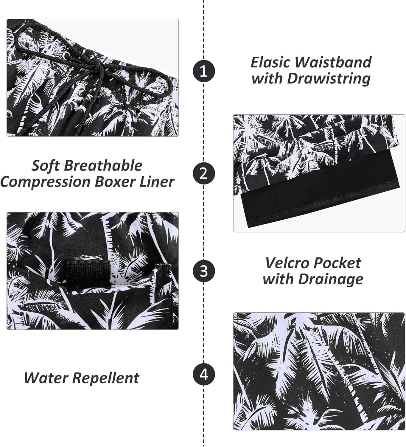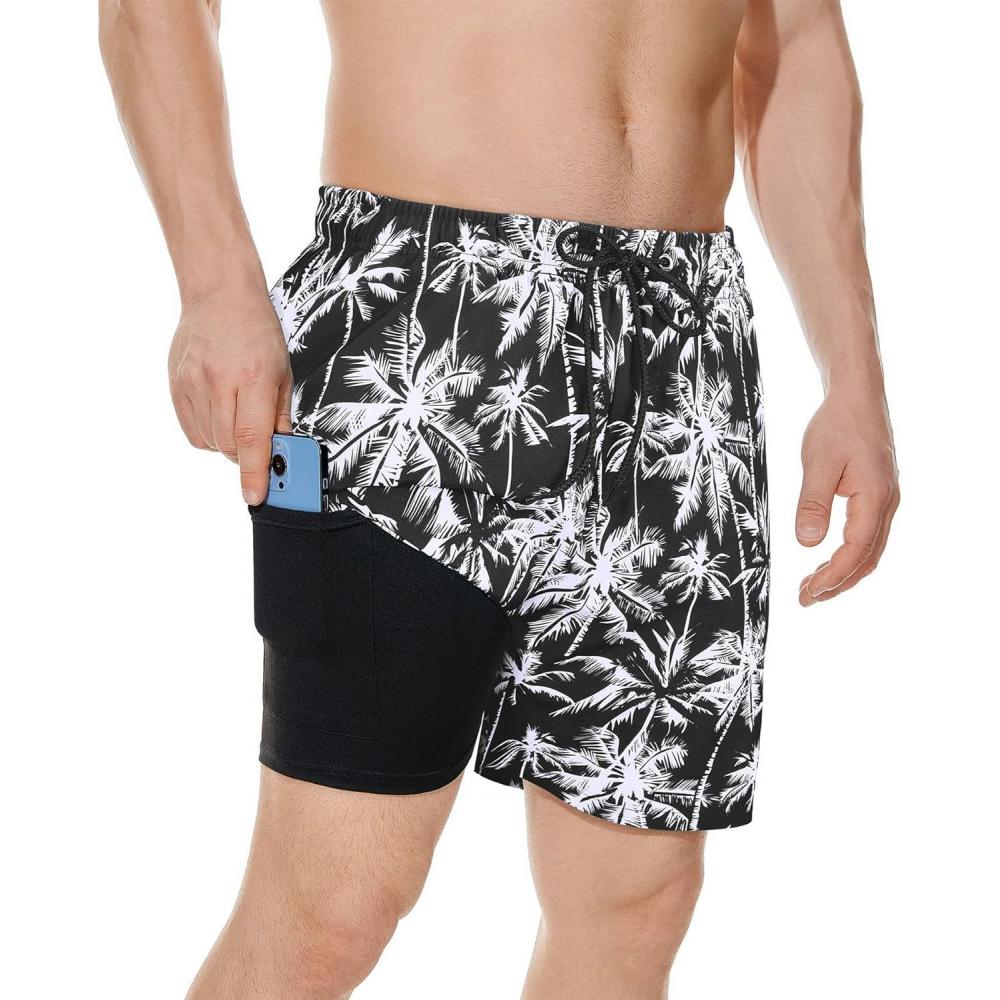 American Trends Mens Swim Trunks with Compression Liner Qucik Dry Board Shorts 2 in 1 Men’s Swimsuits(Black Coconut)