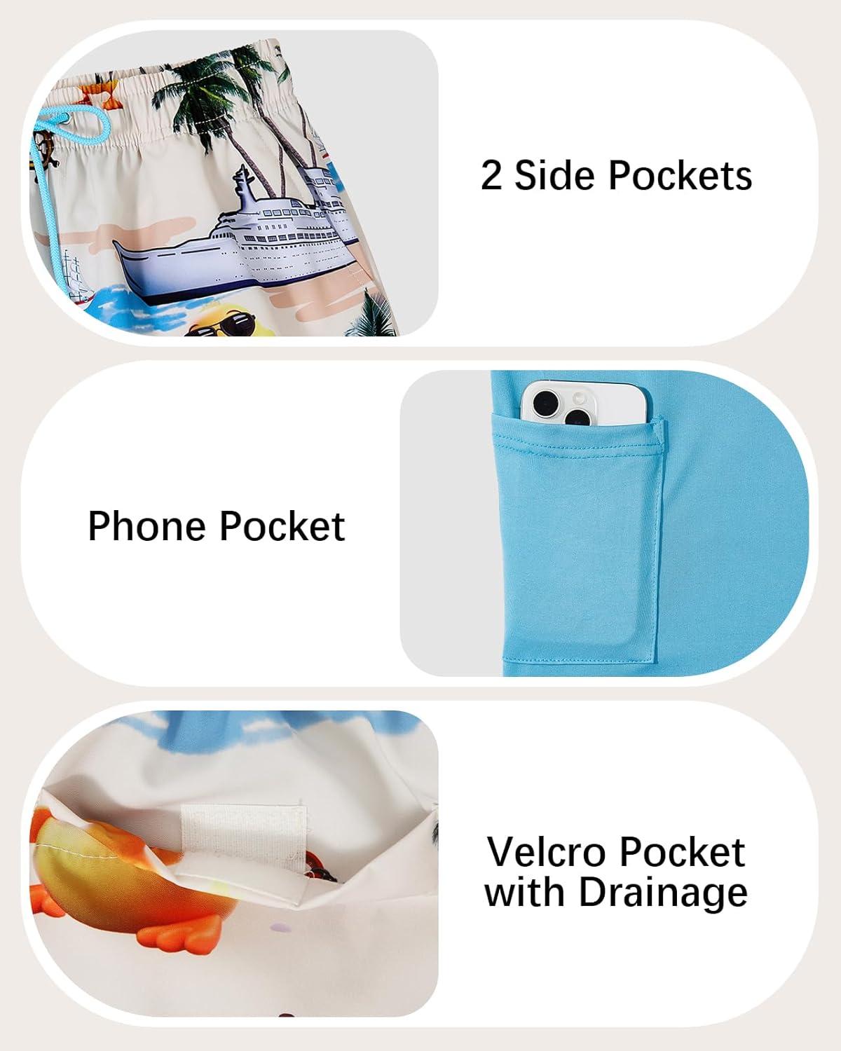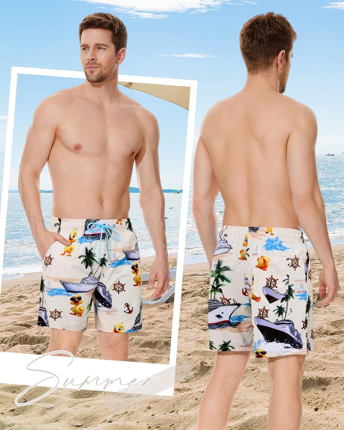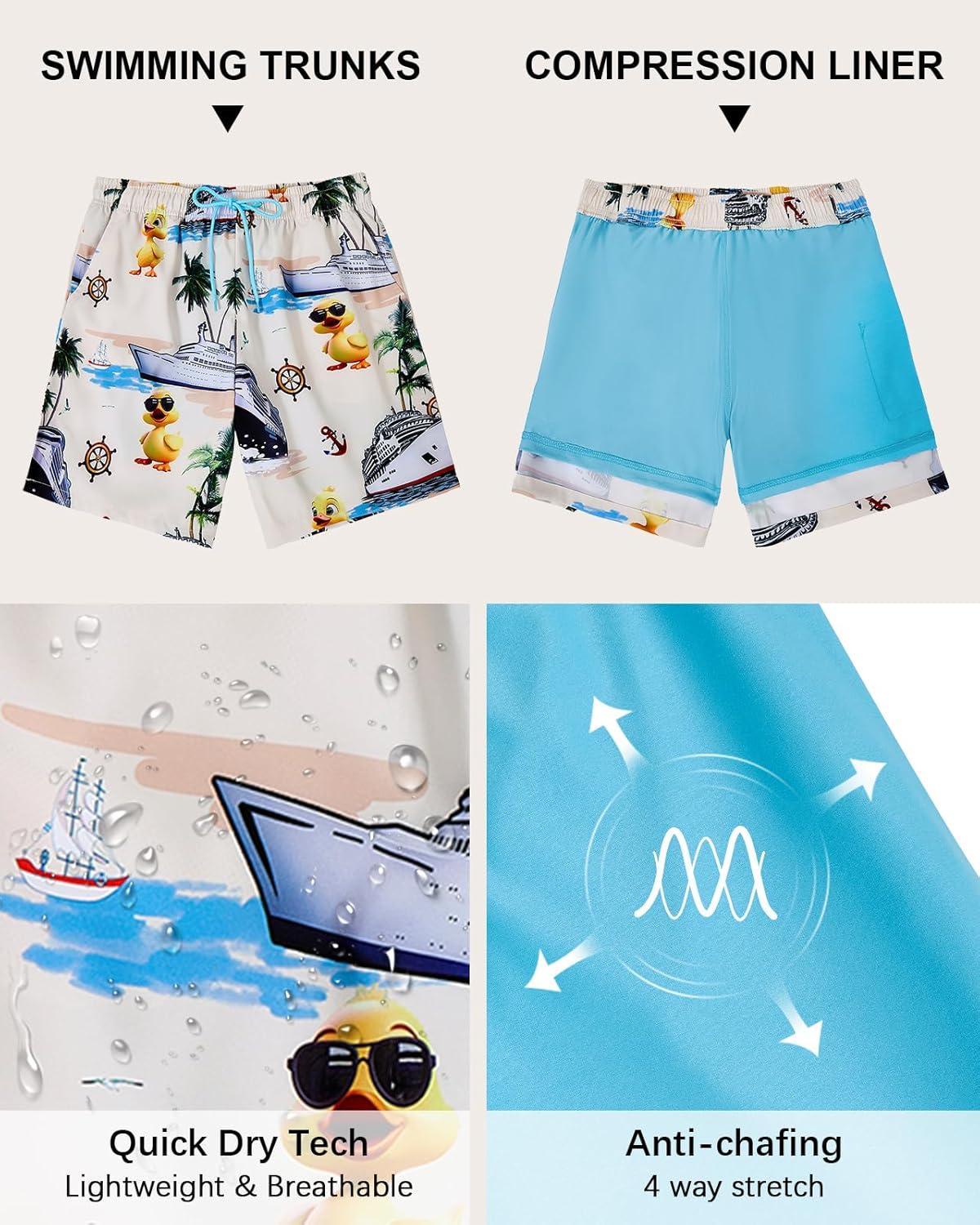 American Trends Mens Swim Trunks with Compression Liner Qucik Dry Board Shorts 2 in 1 Men’s Swimsuits(Duck)