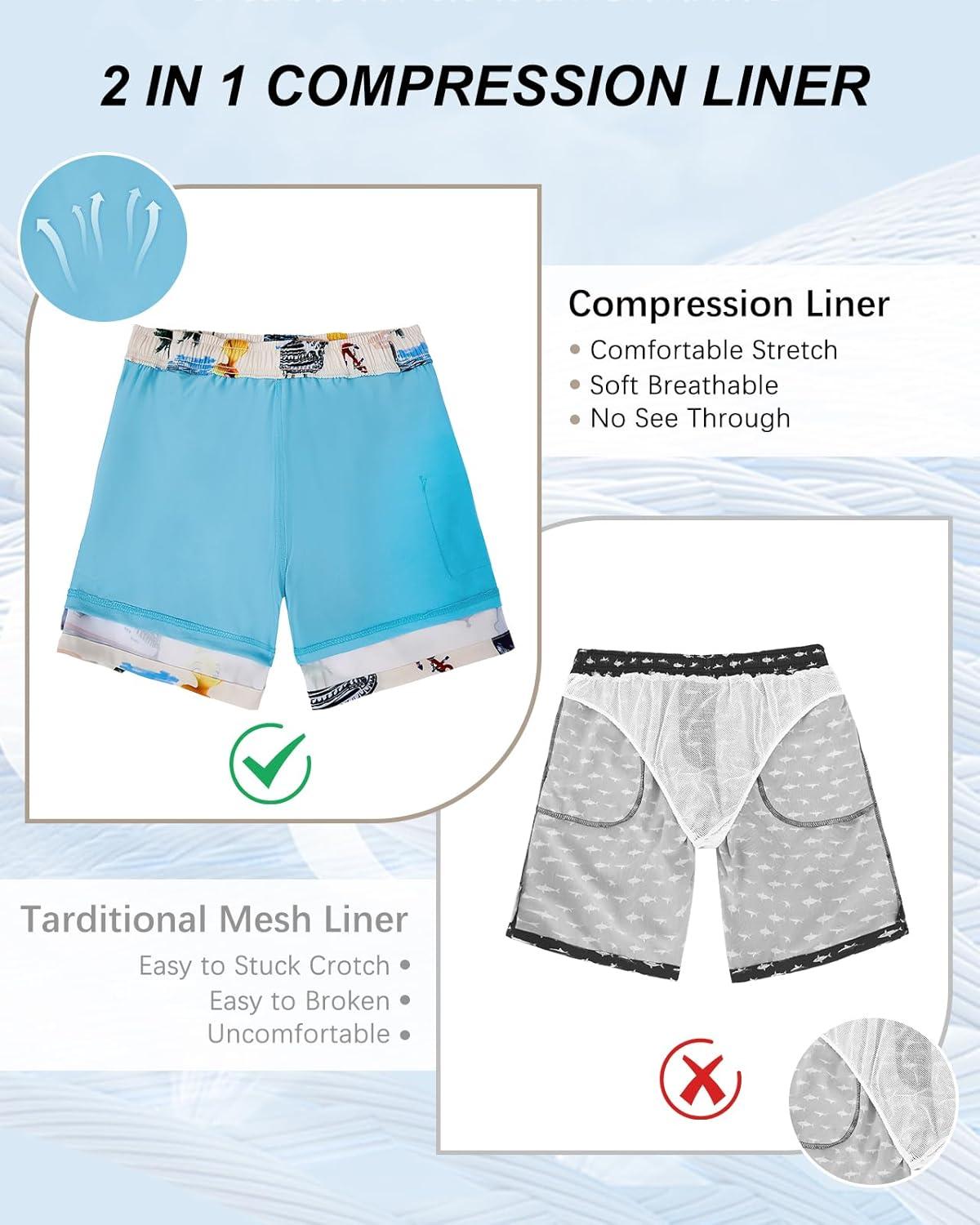 American Trends Mens Swim Trunks with Compression Liner Qucik Dry Board Shorts 2 in 1 Men’s Swimsuits(7″totem Black)