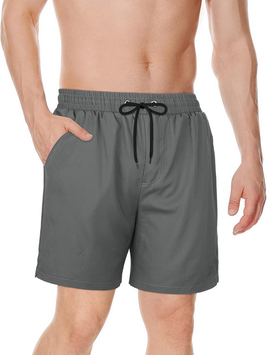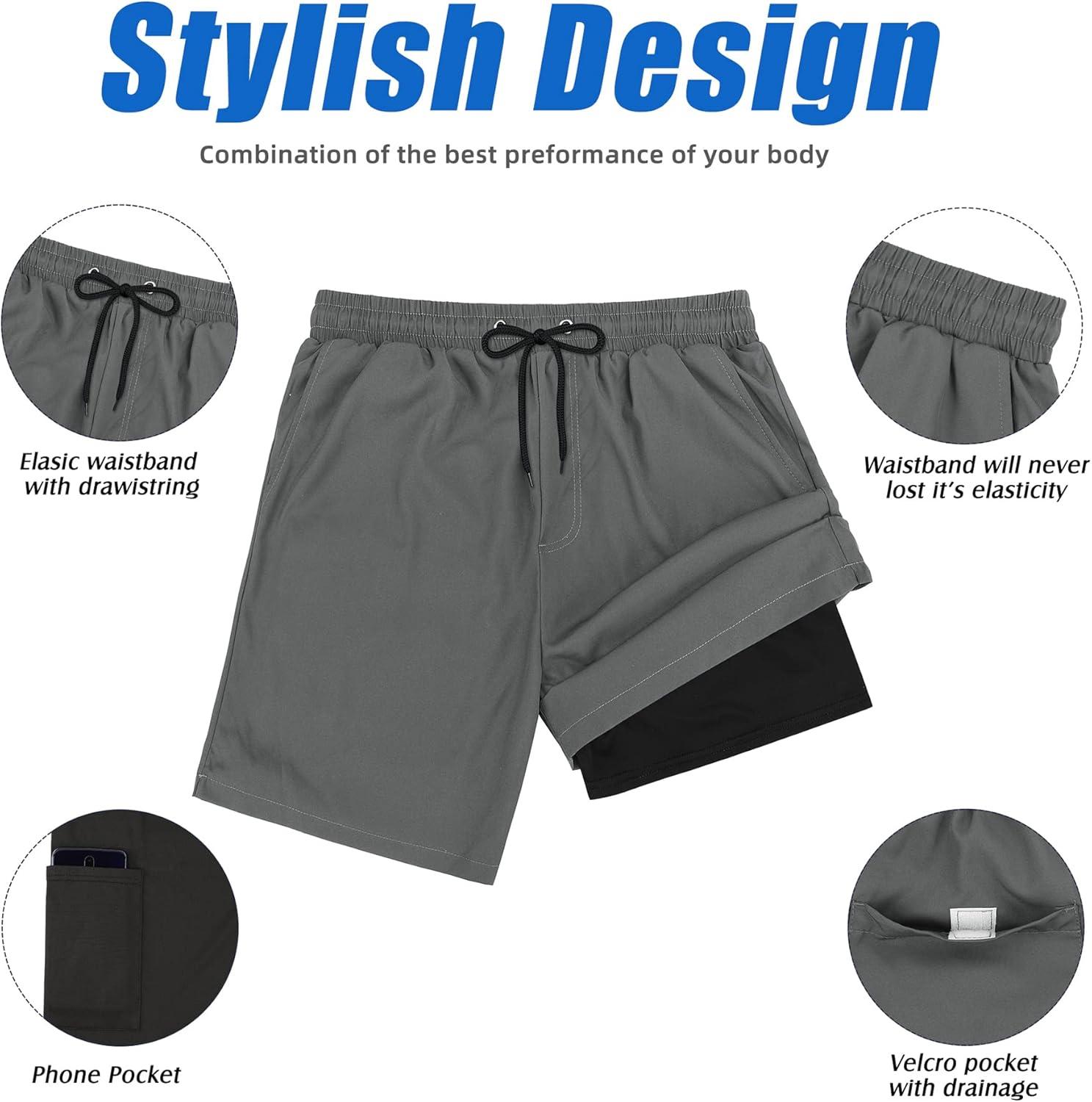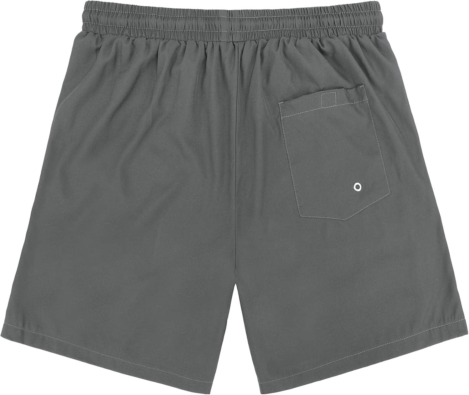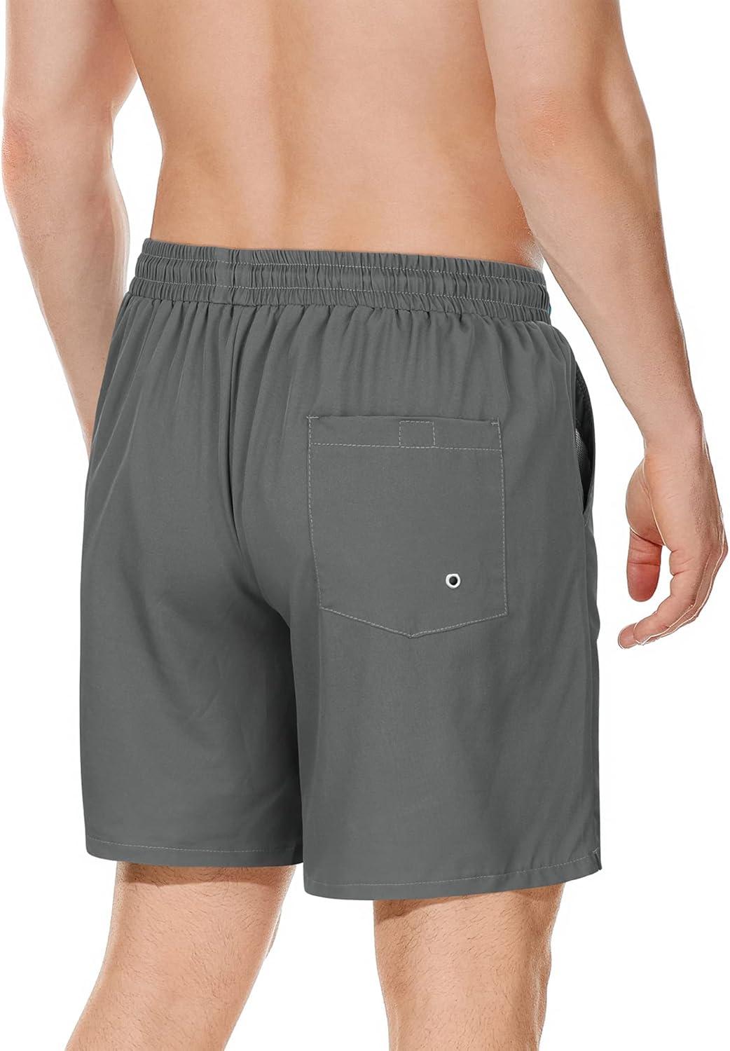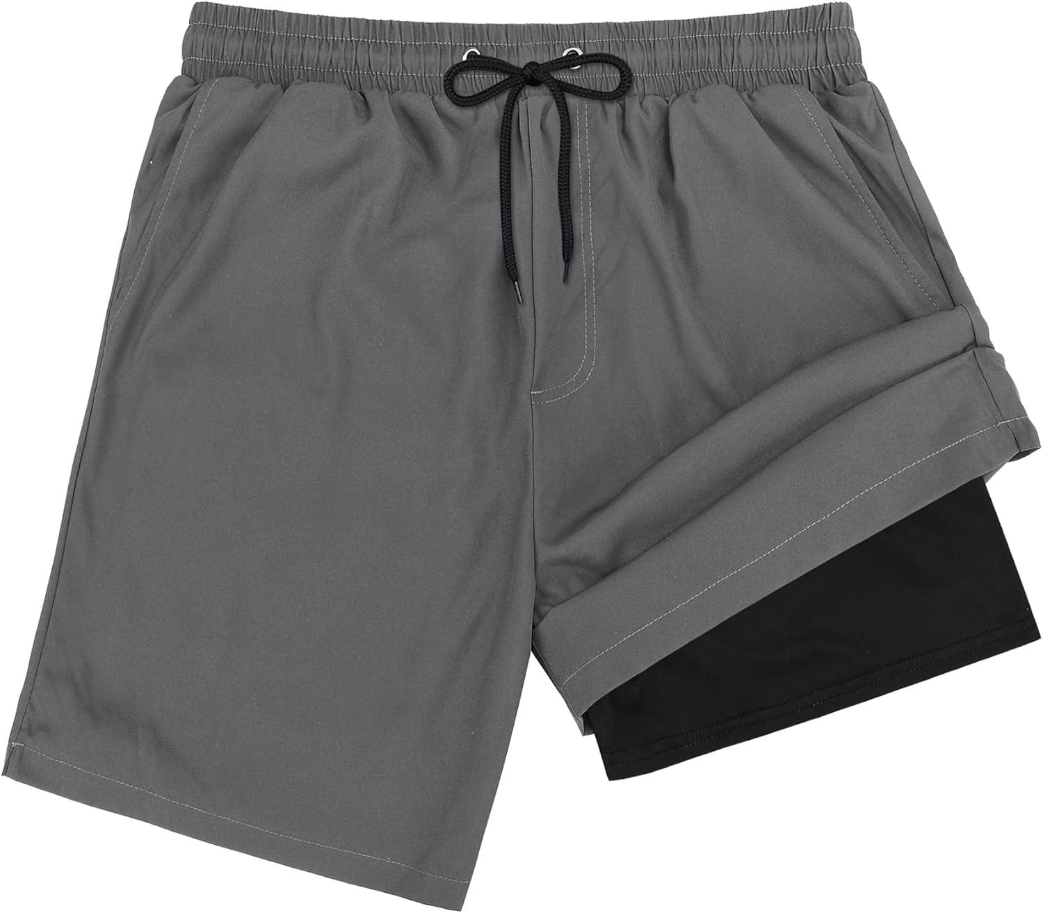American Trends Mens Swim Trunks with Compression Liner Qucik Dry Board Shorts 2 in 1 Men’s Swimsuits(Grey)