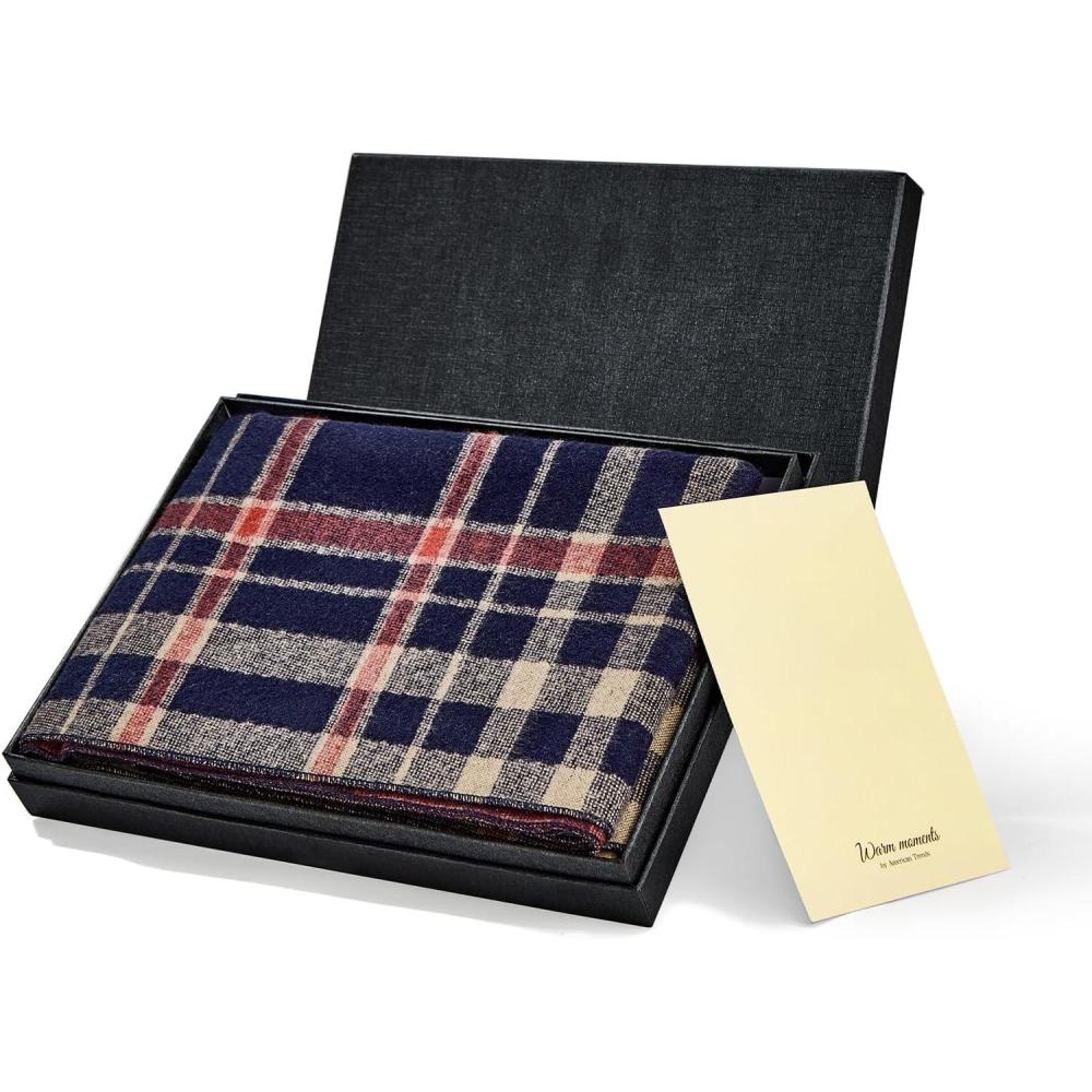 American Trends Men’s Winter Scarf with Gift Box – Plaid and Solid Scarf for Men, Cold Weather Warm Scarves, Winter Gift(Navy & Beige & Red)