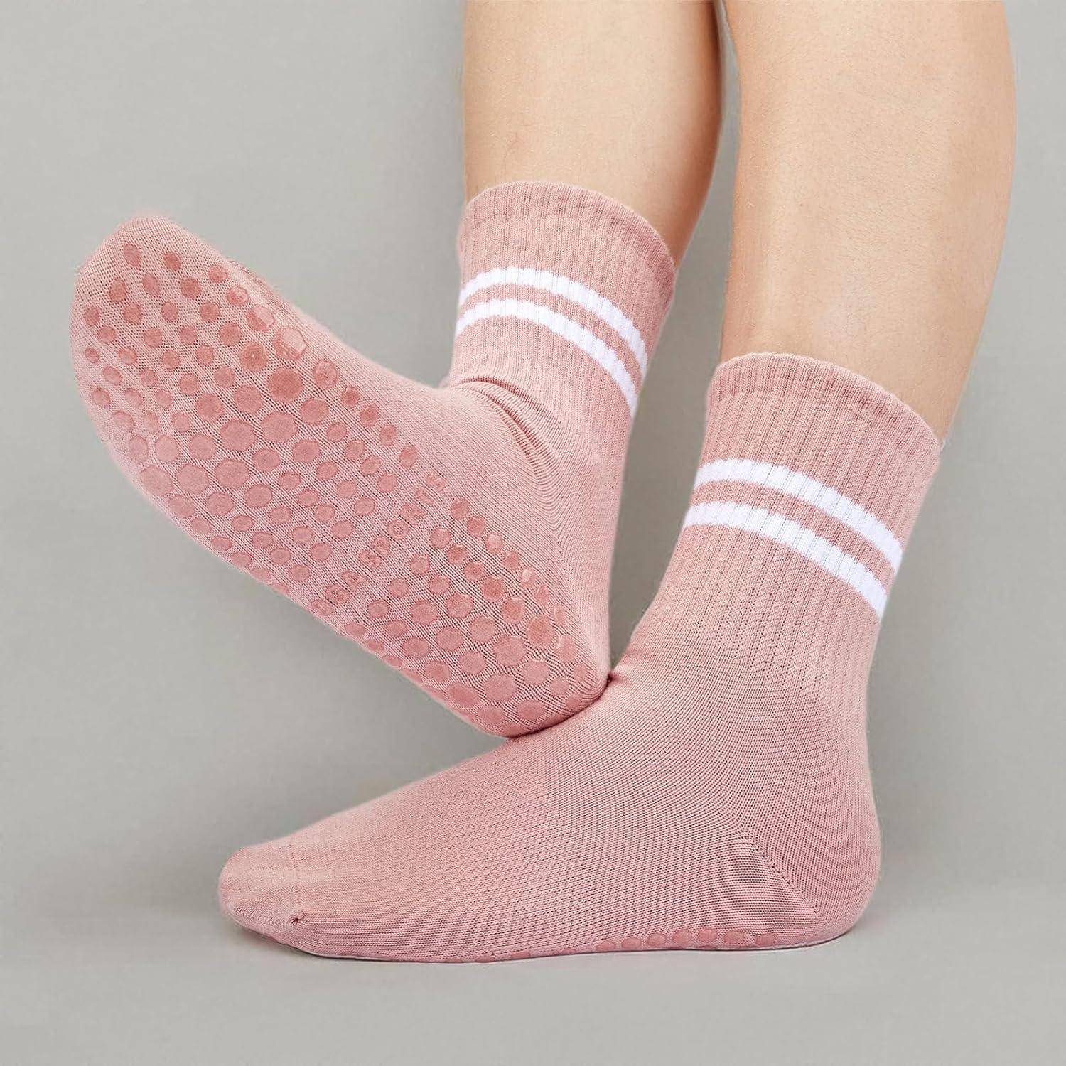 American Trends Pilates Socks with Grips for Women Yoga Socks Barre Socks Non Slip Socks(3 Pairs-black White Pink)