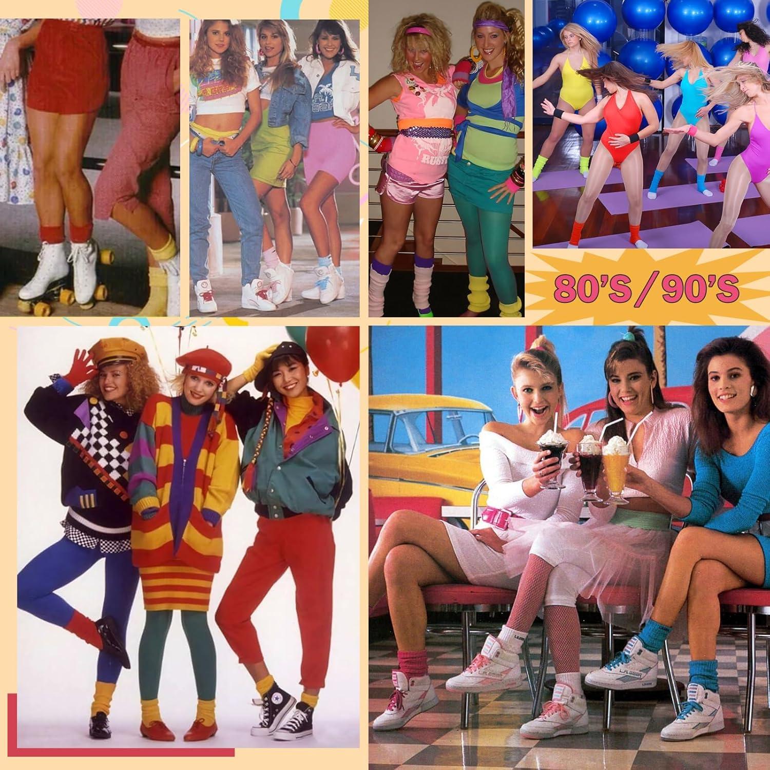 American Trends Slouch Socks for Woman Scrunch Socks 80s 90s Knee High Socks Neon Socks Slouchy Socks Pack Long Socks(Bright Green&rose Red)