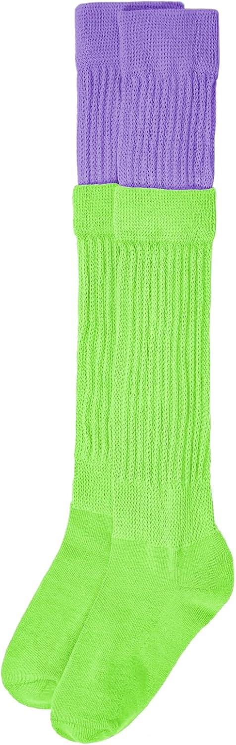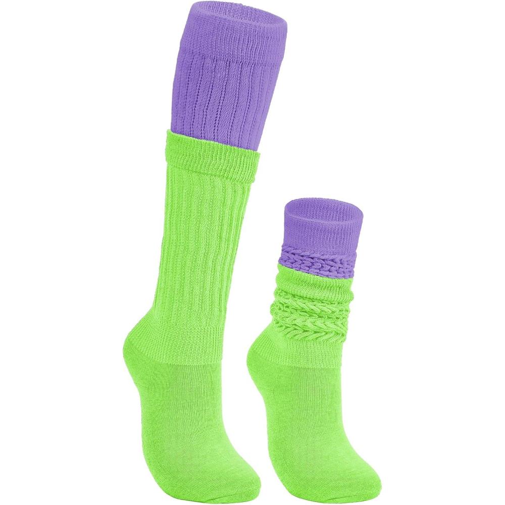American Trends Slouch Socks for Woman Scrunch Socks 80s 90s Knee High Socks Neon Socks Slouchy Socks Pack Long Socks(Bright Green&light Purple)