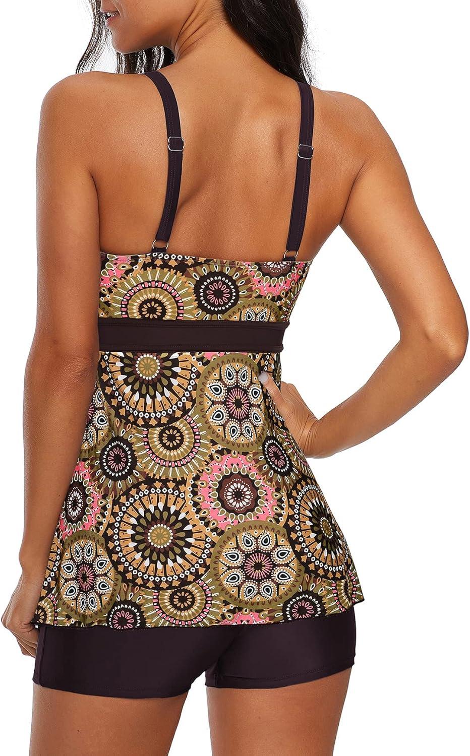 American Trends Tankini Swimsuits Plus Size Tankini Bathing Suits for Women Tankini Bathing Suits Swimwear for Women(Brown Print)