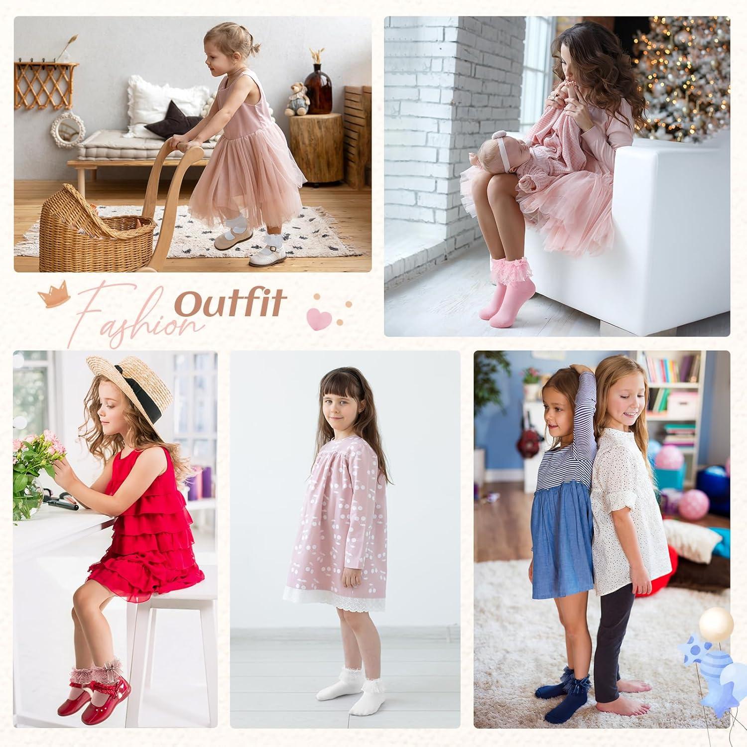 American Trends Toddler Girls 3 Pairs Ruffle Socks Baby Cute Bowknot Lace Dress Socks(Multicolor 2)