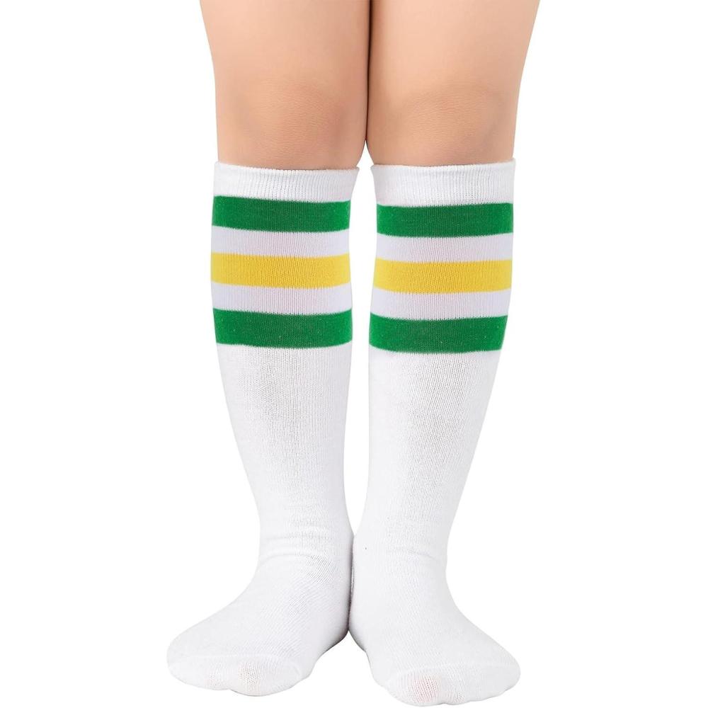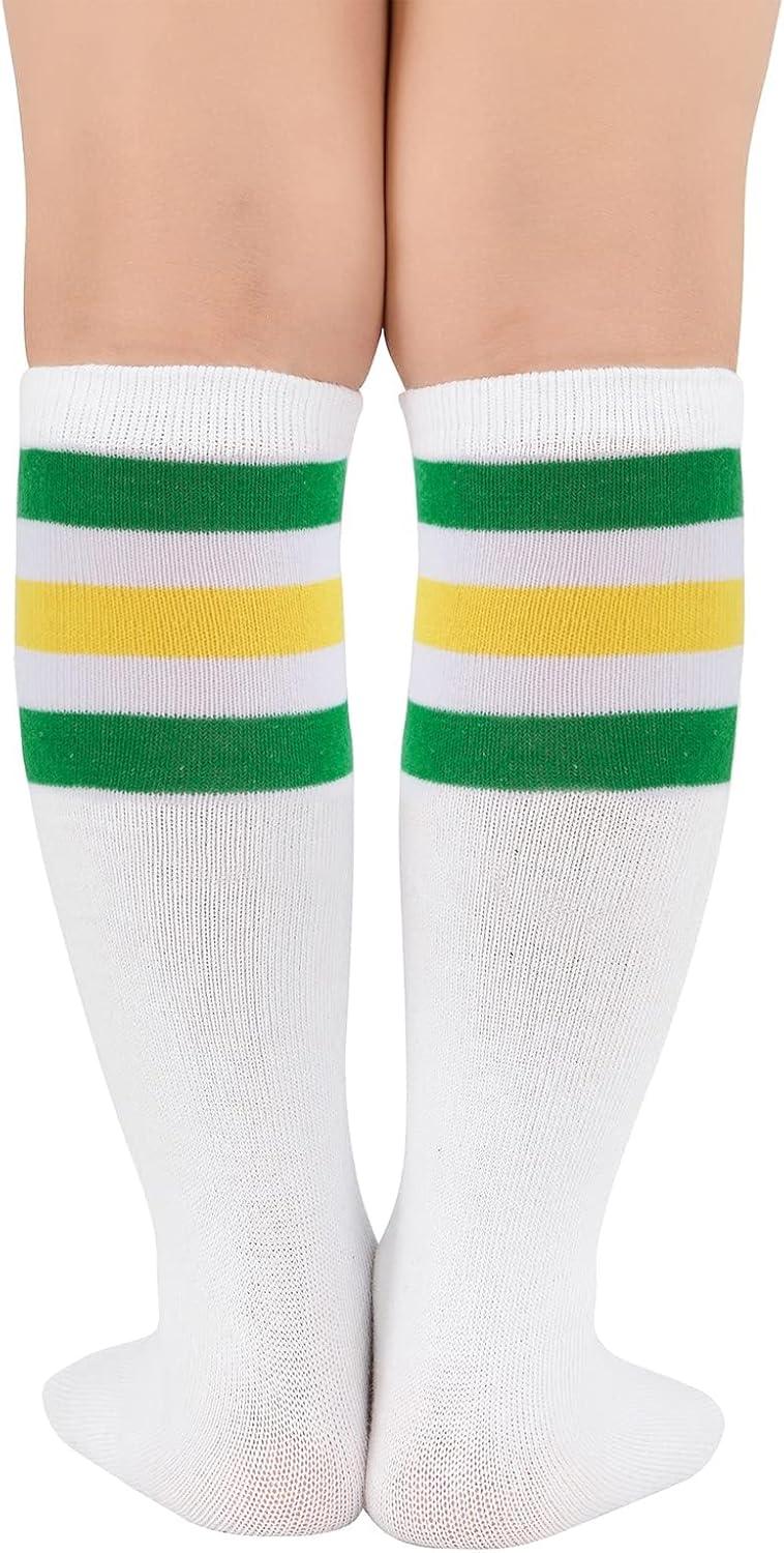American Trends Toddler Kids Youth Soccer Socks-Long Knee High Socks for Boys Girls Baseball Softball Football 1-12 years(1 Pack Green Yellow Stripes)