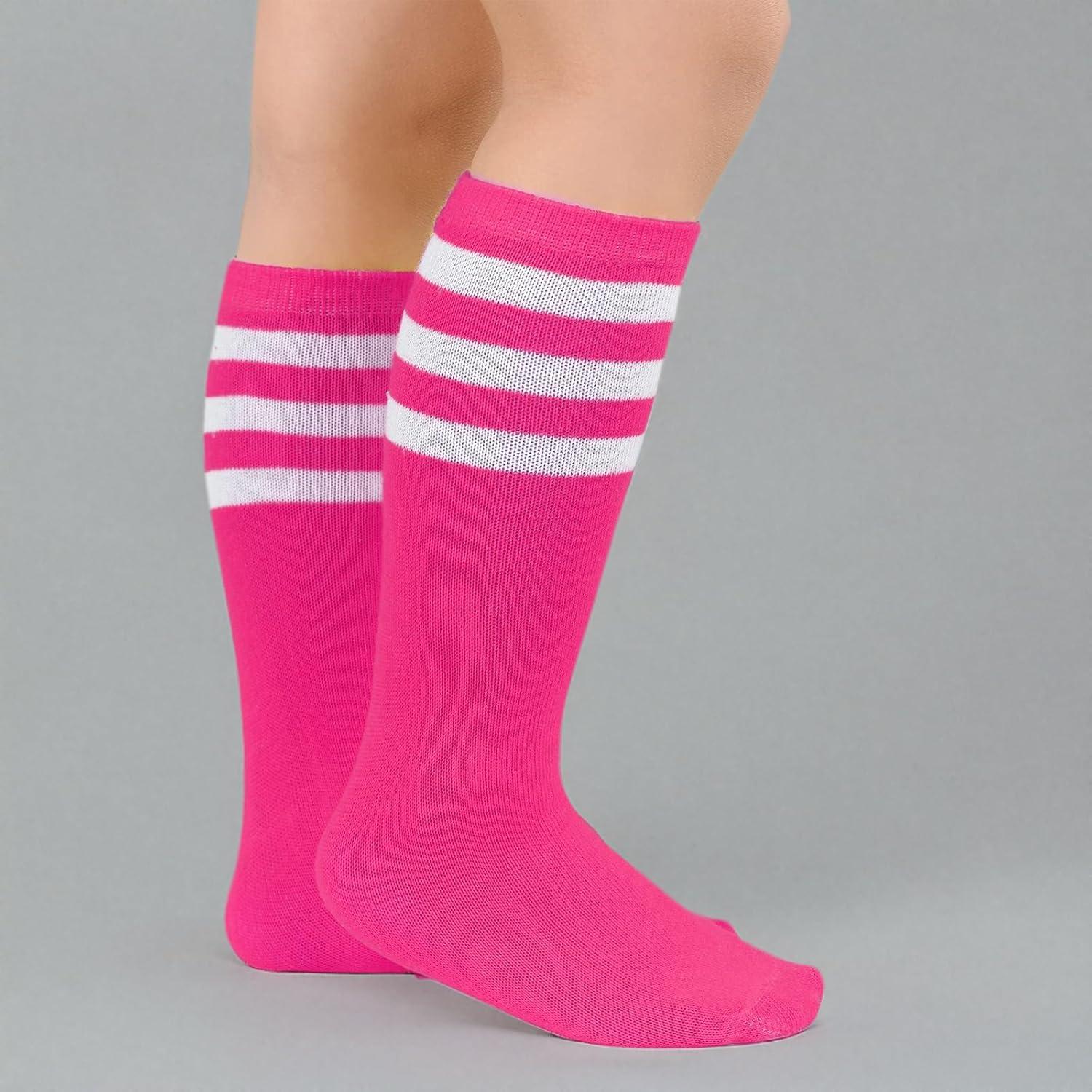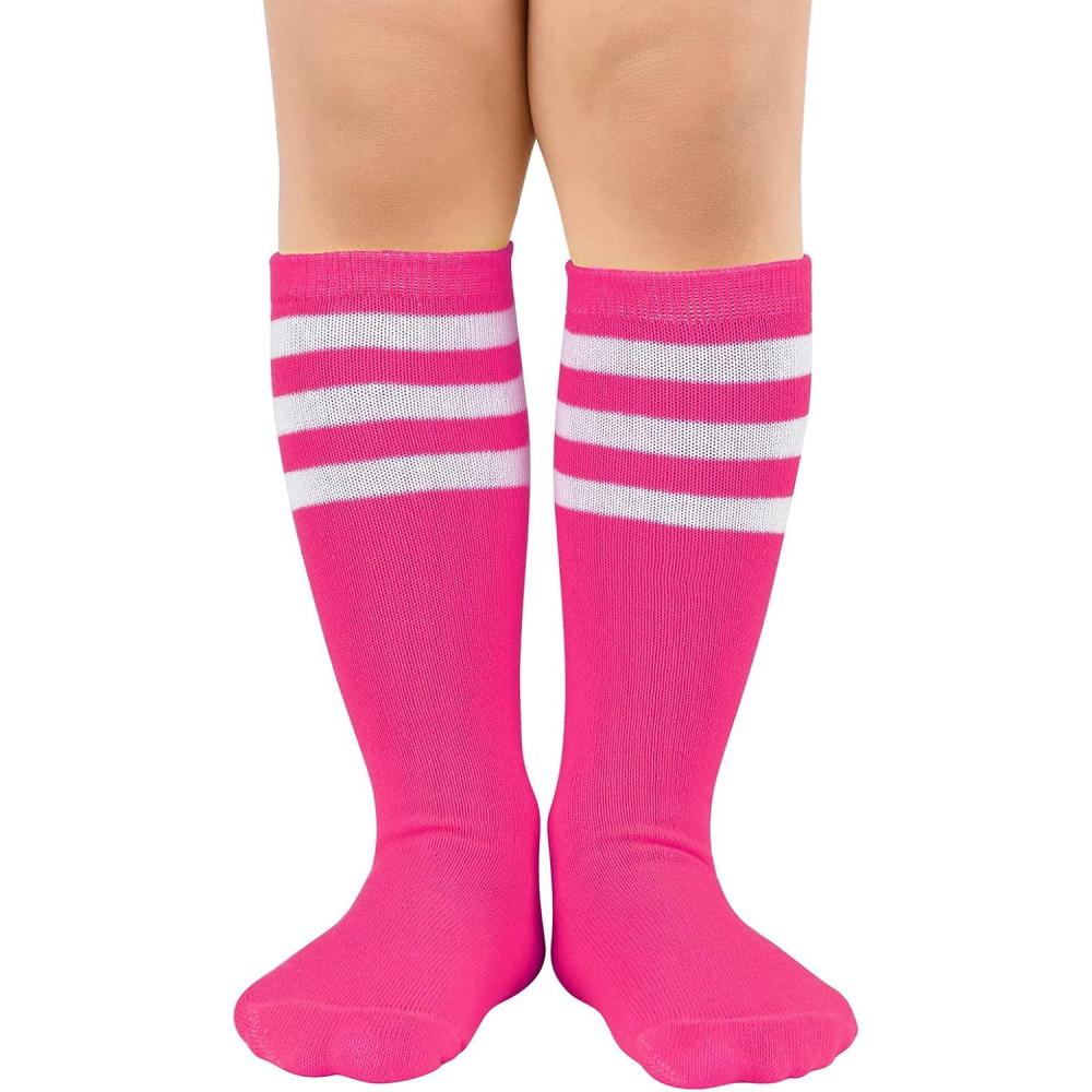 American Trends Toddler Kids Youth Soccer Socks-Long Knee High Socks for Boys Girls Baseball Softball Football 1-12 years(1 Pack Rose Pink White)