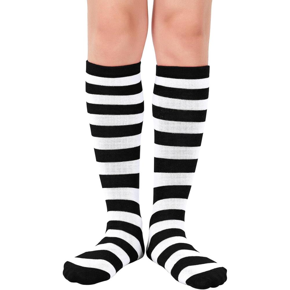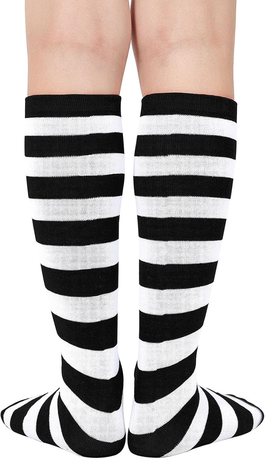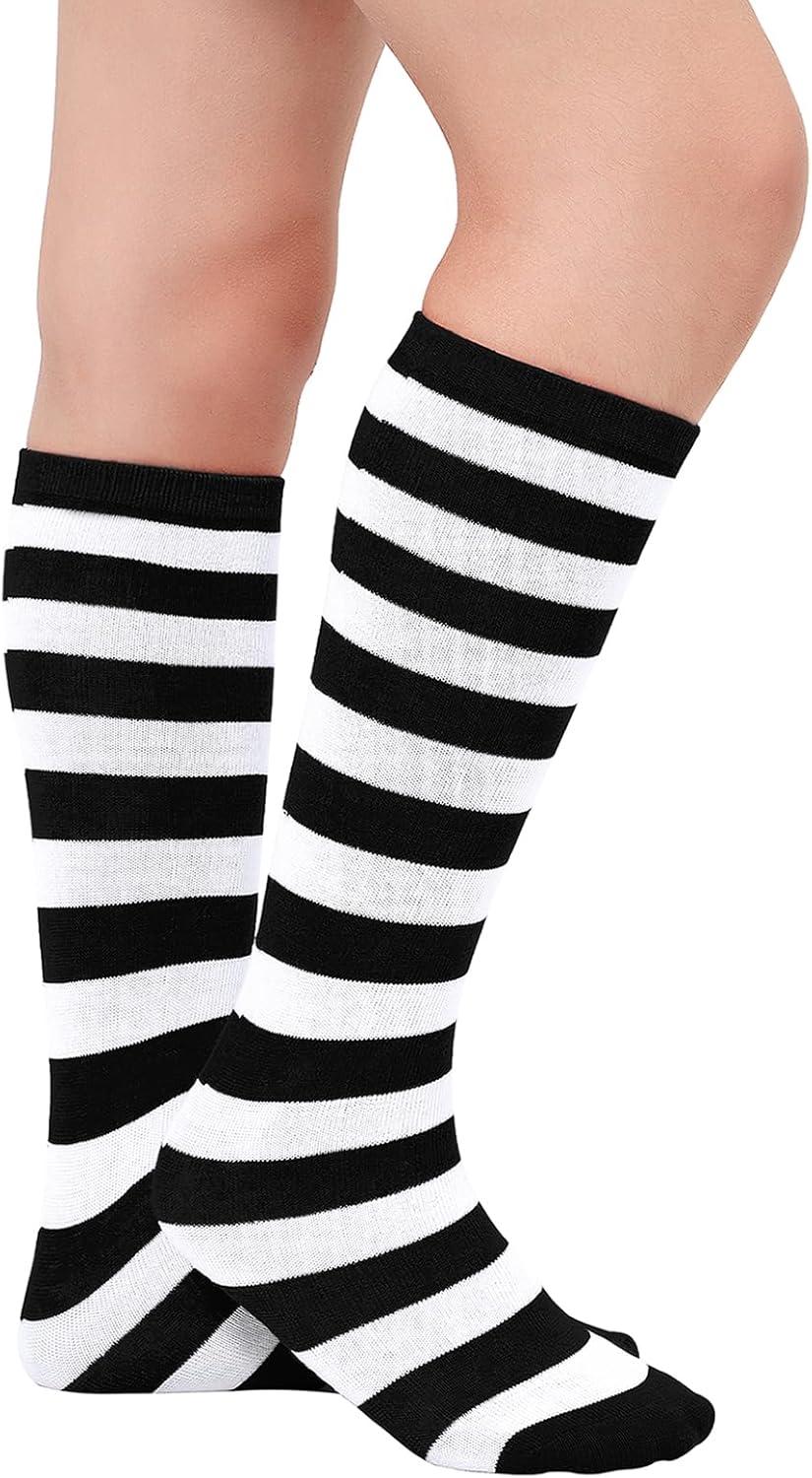 American Trends Toddler Kids Youth Soccer Socks-Long Knee High Socks for Boys Girls Baseball Softball Football 1-12 years(1 Pack Striped Black White)
