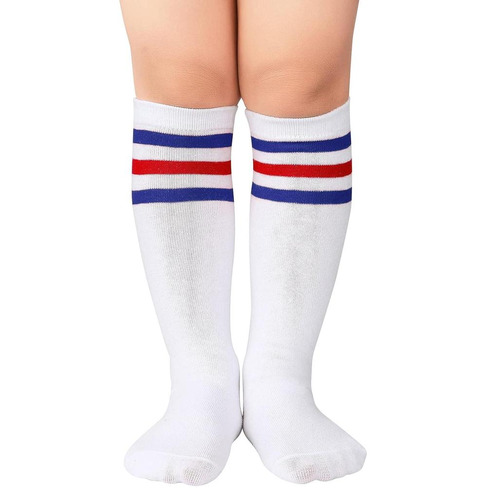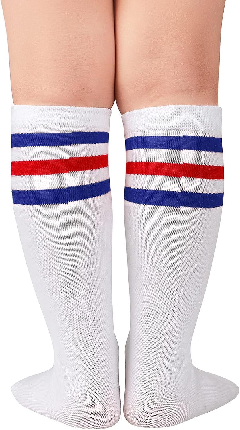 American Trends Toddler Kids Youth Soccer Socks-Long Knee High Socks for Boys Girls Baseball Softball Football 1-12 years(1 Pack White Blue Red)