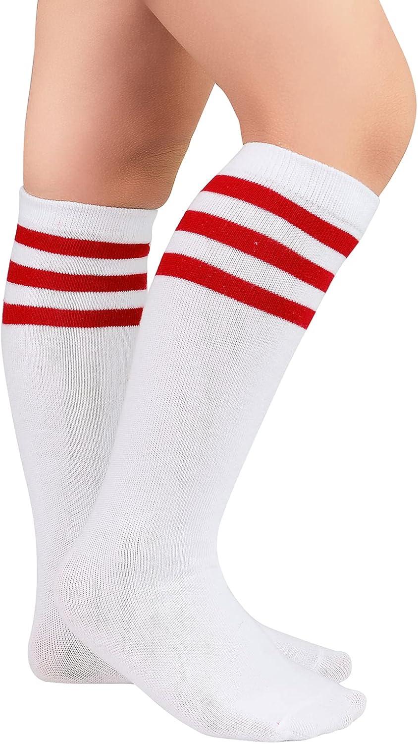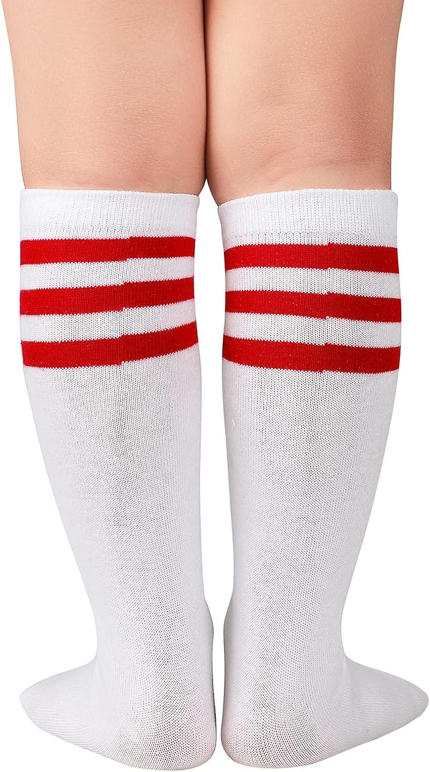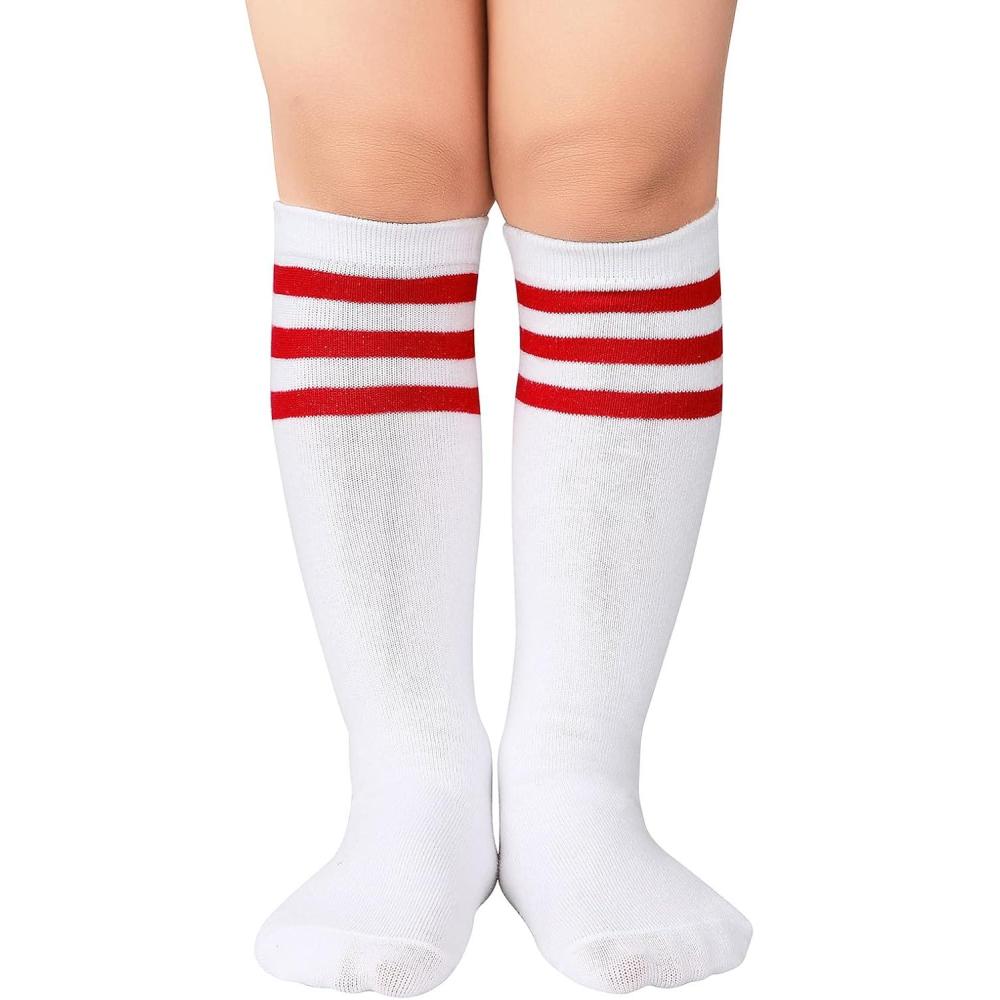 American Trends Toddler Kids Youth Soccer Socks-Long Knee High Socks for Boys Girls Baseball Softball Football 1-12 years(1 Pack White Red)