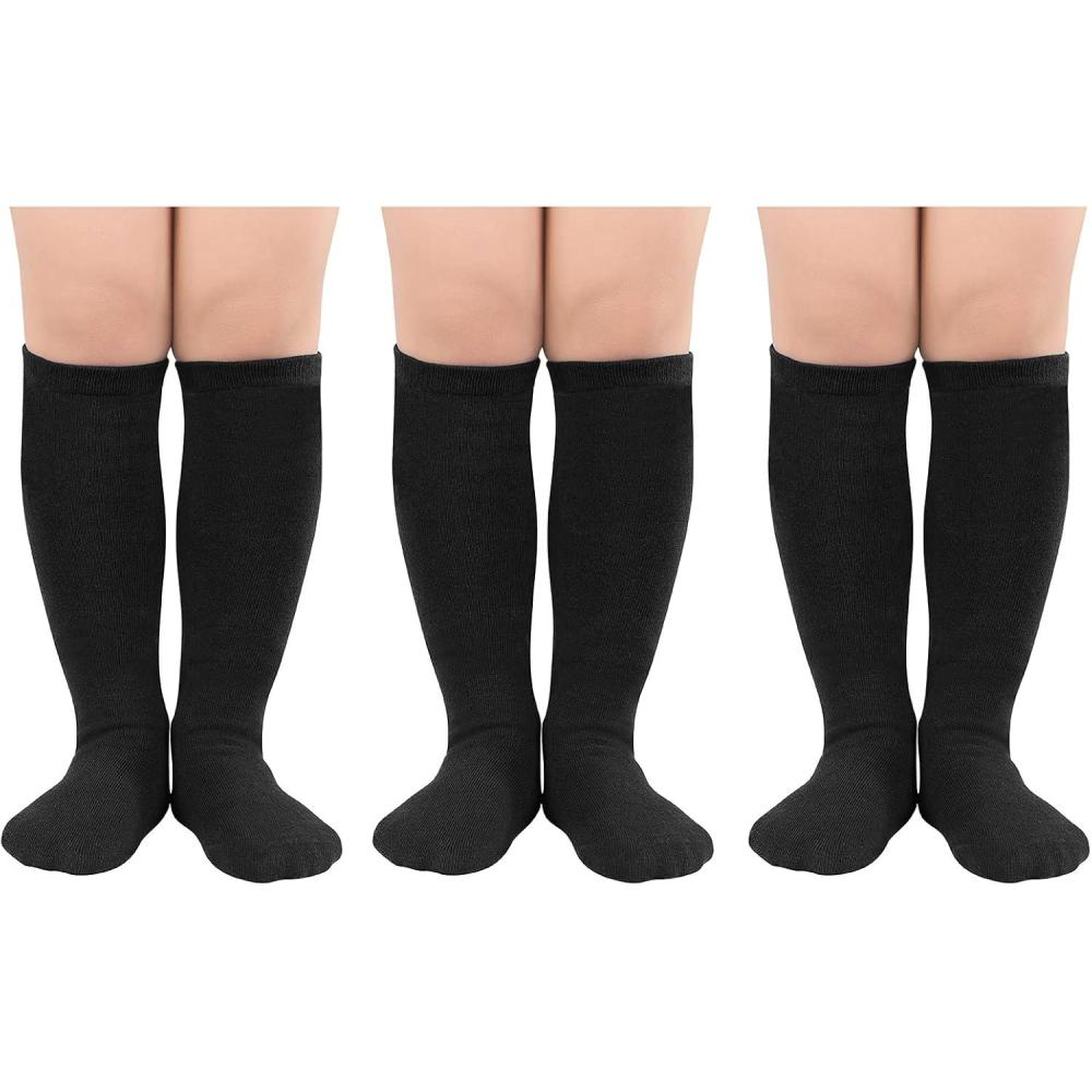 American Trends Toddler Kids Youth Soccer Socks-Long Knee High Socks for Boys Girls Baseball Softball Football 1-12 years(3 Pack Black)