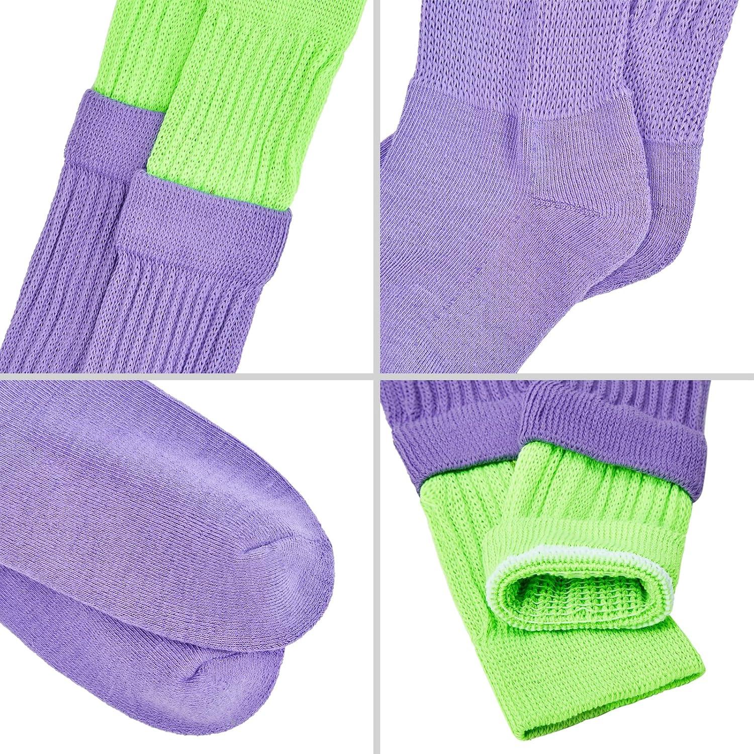 American Trends Winter Knee High Slouch Socks for Women Soft Extra Long Scrunch Sock Slouch Boot Socks(1 Pair Rose Red&neon Green)