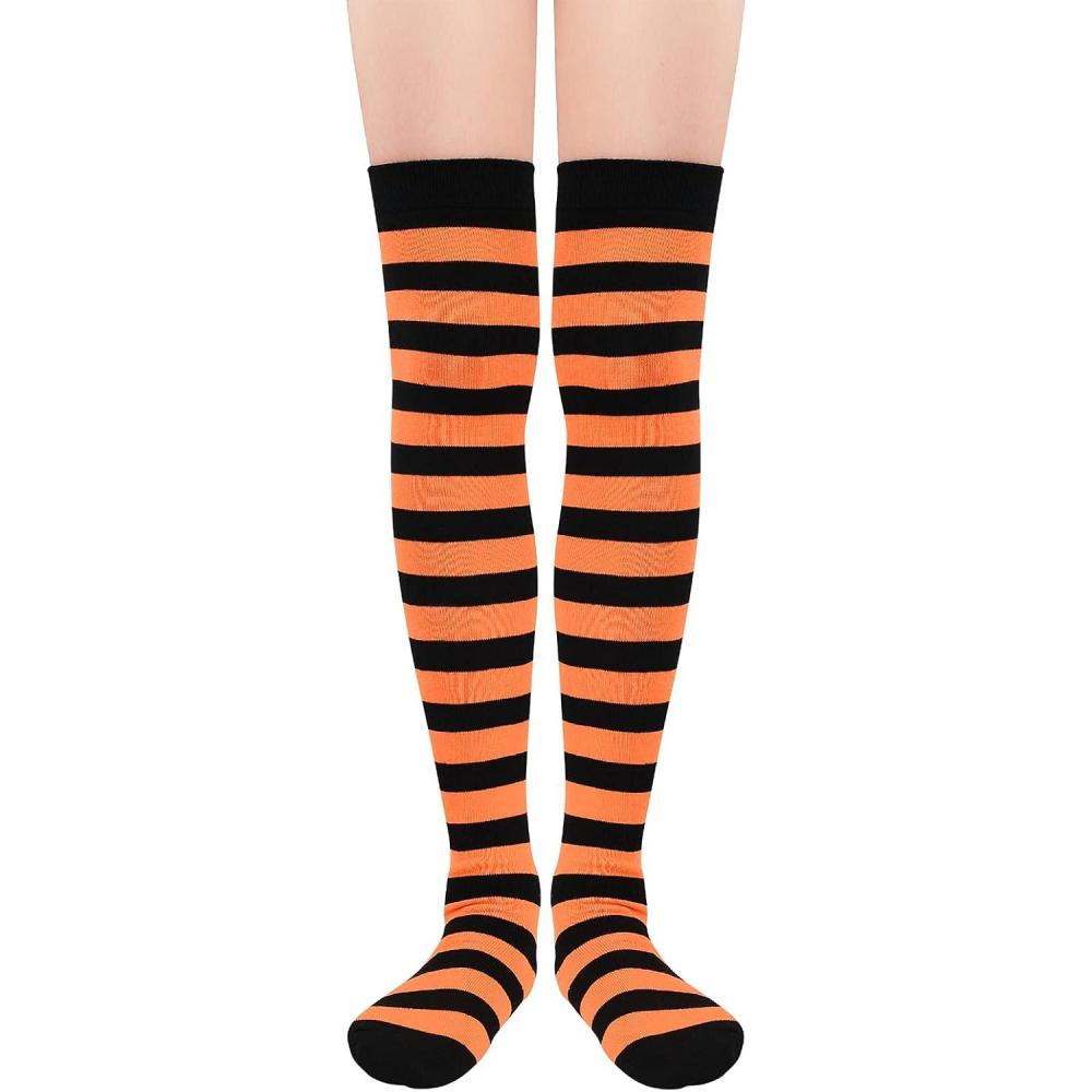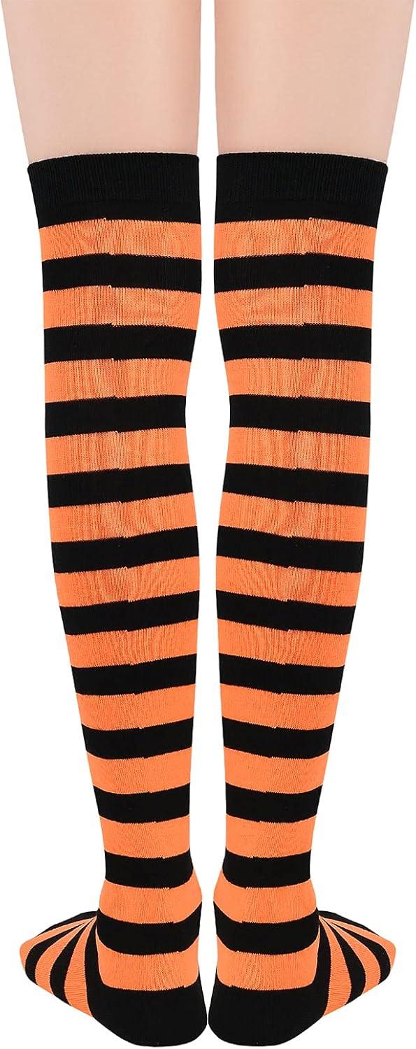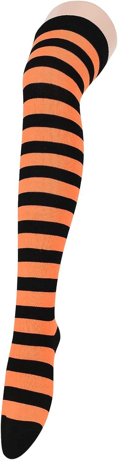 American Trends Womens Rainbow Socks Striped Knee High Socks Thigh High Stockings Casual Tube Socks Costume Leg Warmers(03 Orange Black)