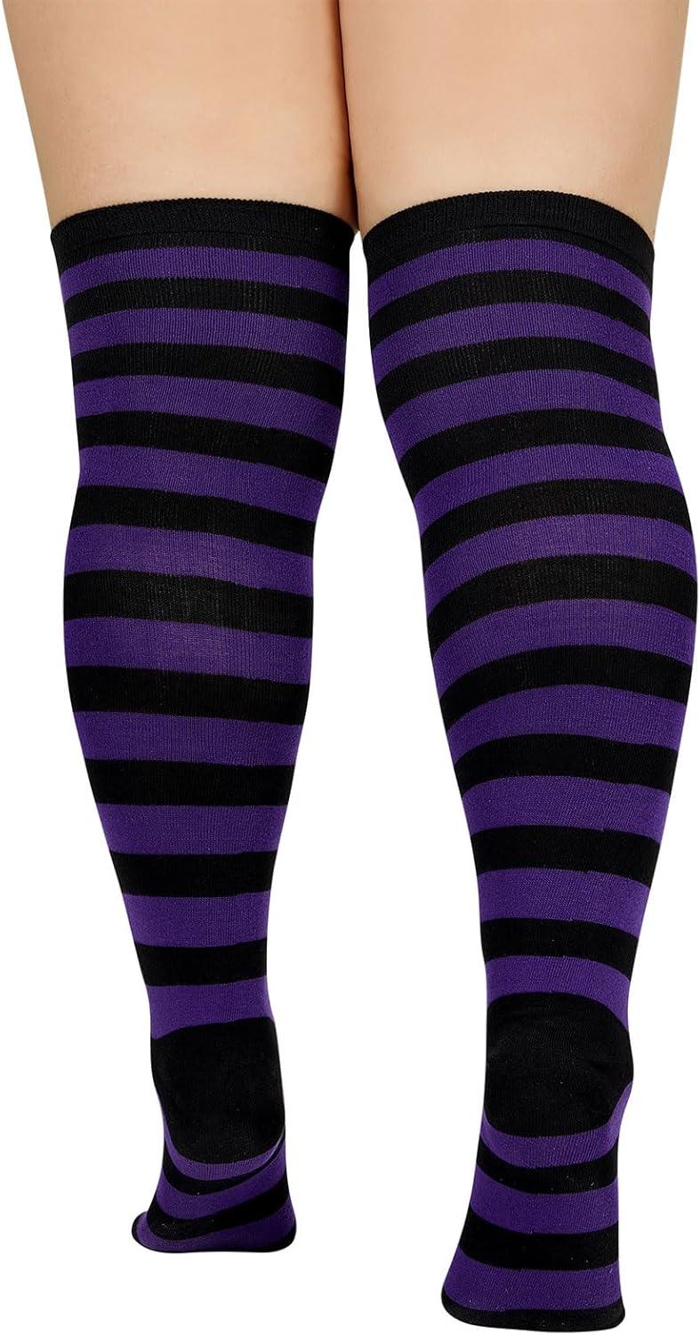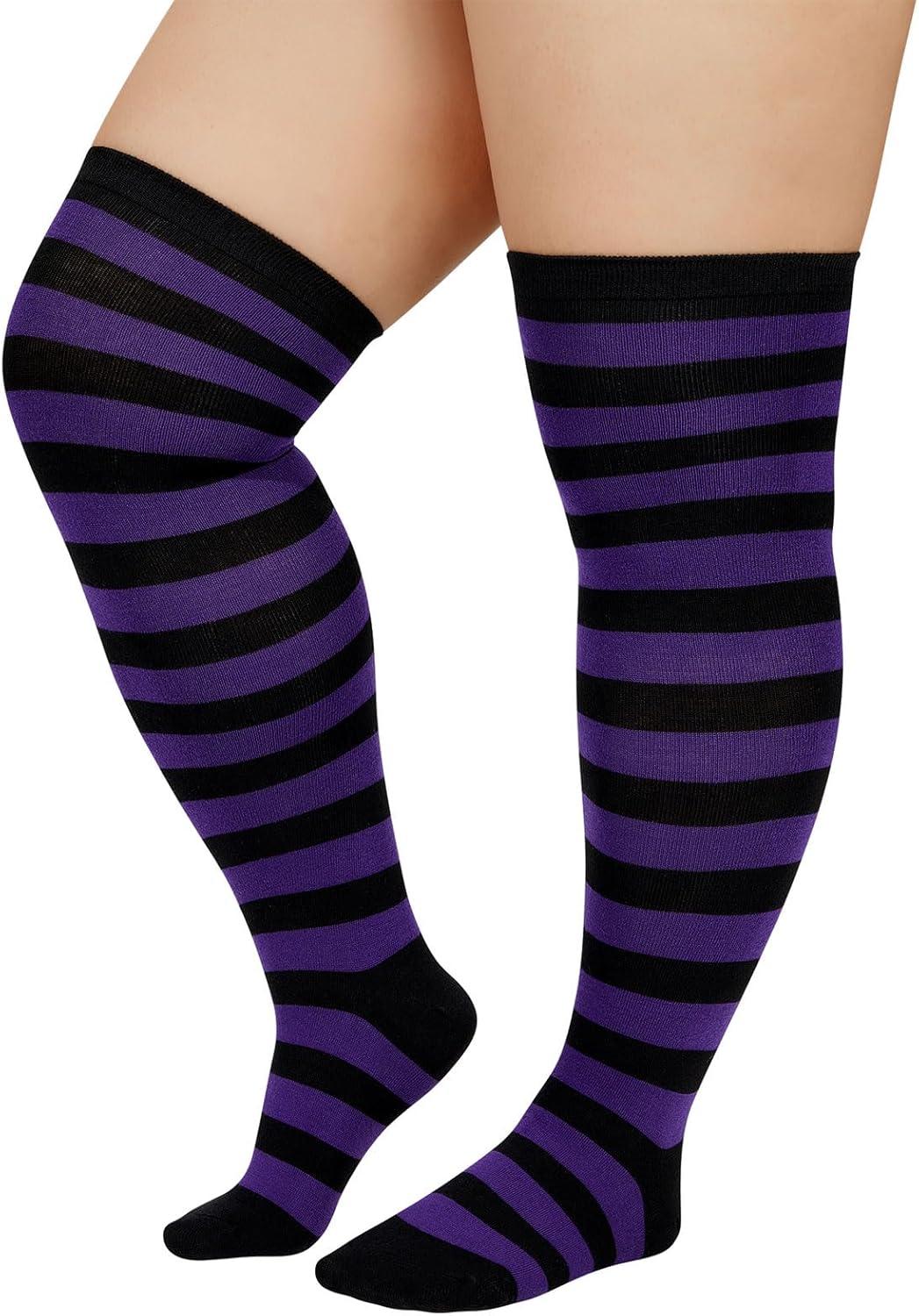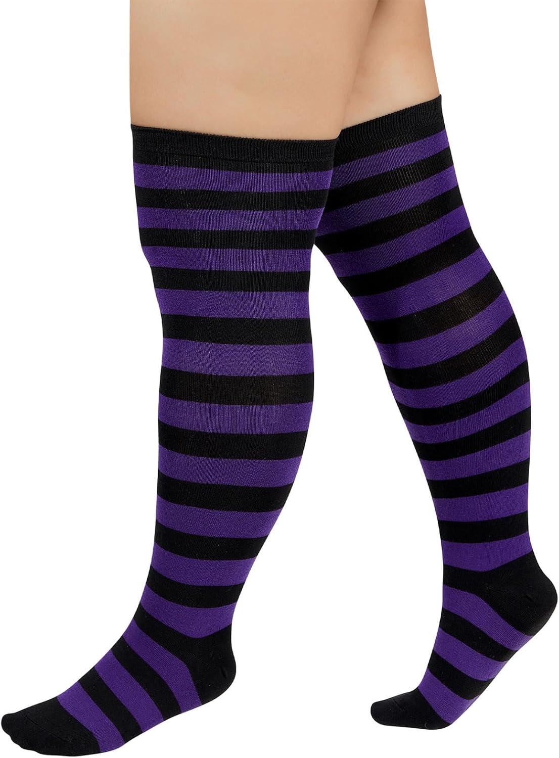 American Trends Womens Rainbow Socks Striped Knee High Socks Thigh High Stockings Casual Tube Socks Costume Leg Warmers(03 Purple Black)