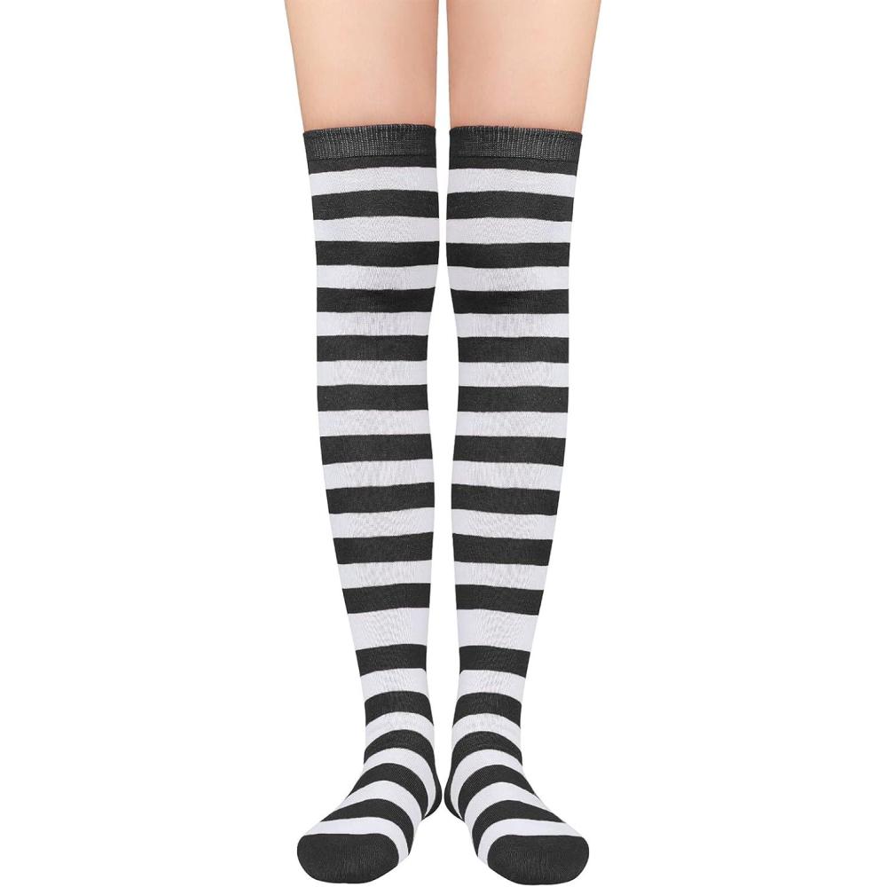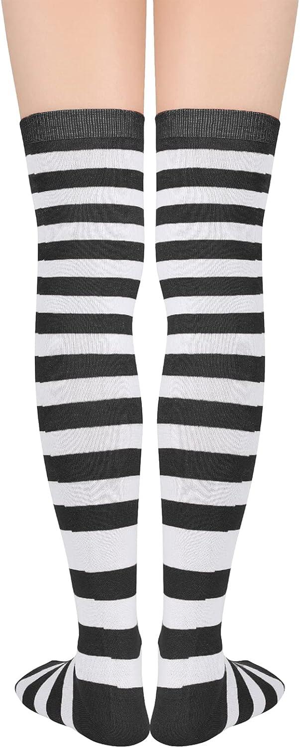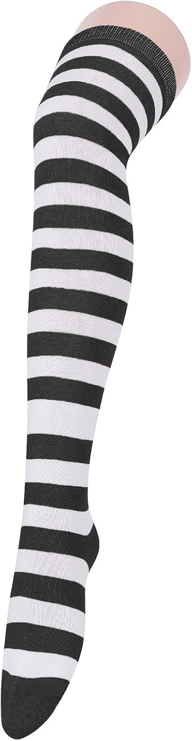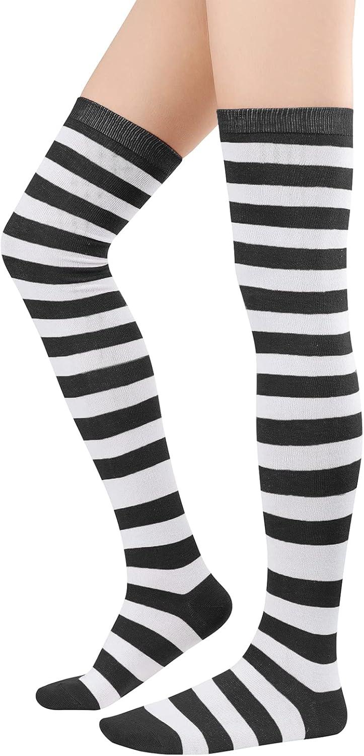 American Trends Womens Rainbow Socks Striped Knee High Socks Thigh High Stockings Casual Tube Socks Costume Leg Warmers(08 Rose Black Stripes)