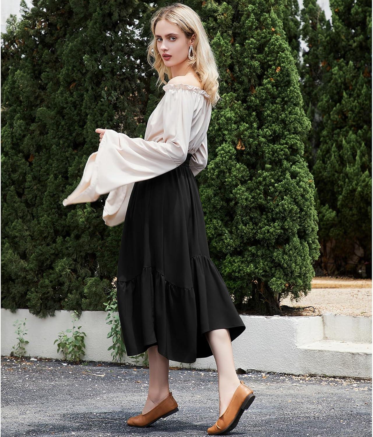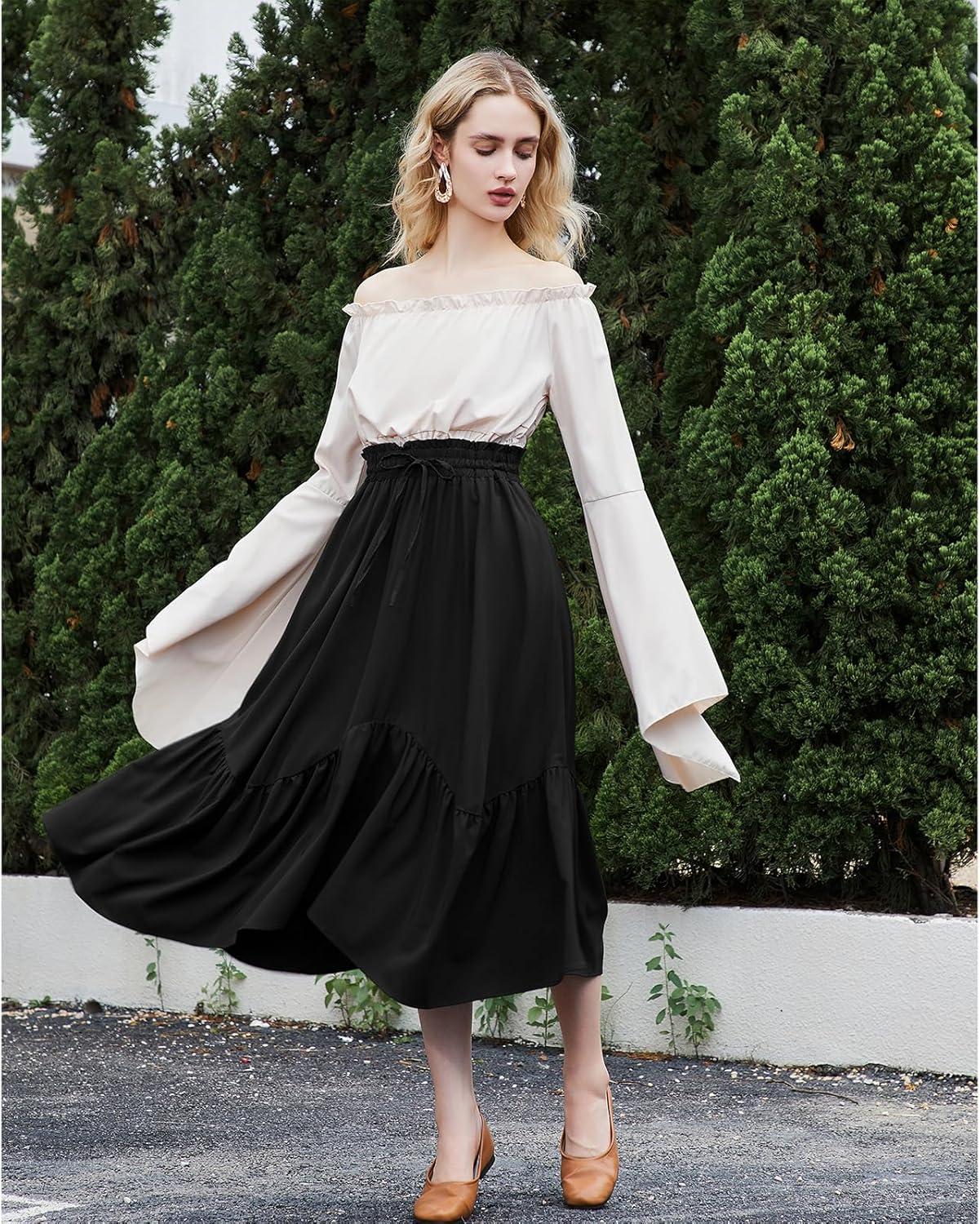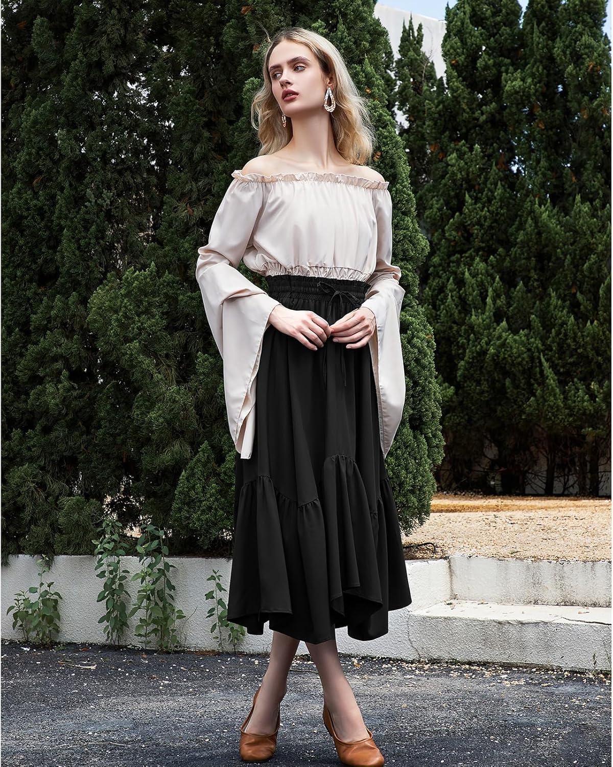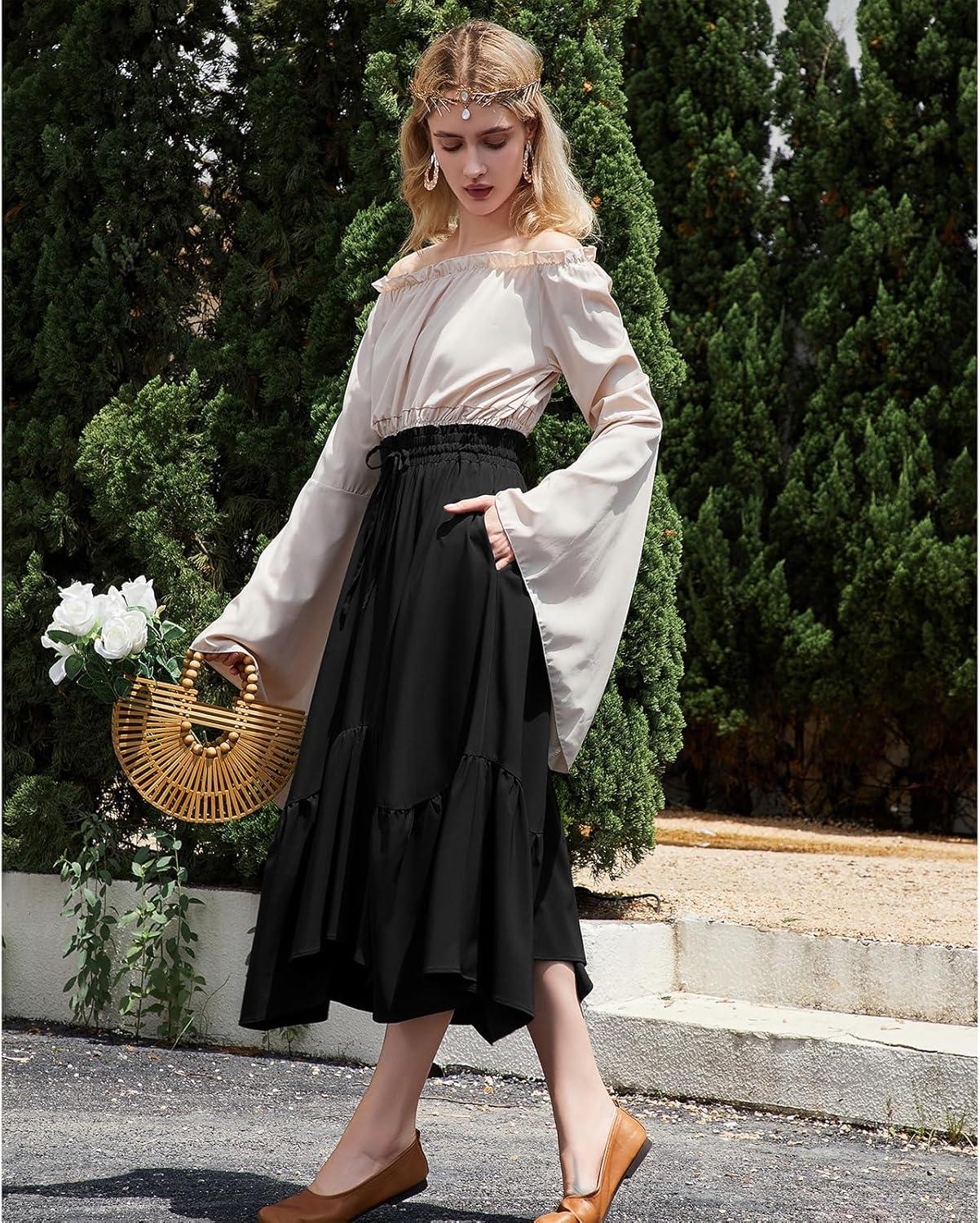 American Trends Women’s Renaissance Pirate Skirt Medieval Long Flowy Maxi Skirt for Ren Faire Halloween Outfit with Pockets(Black)