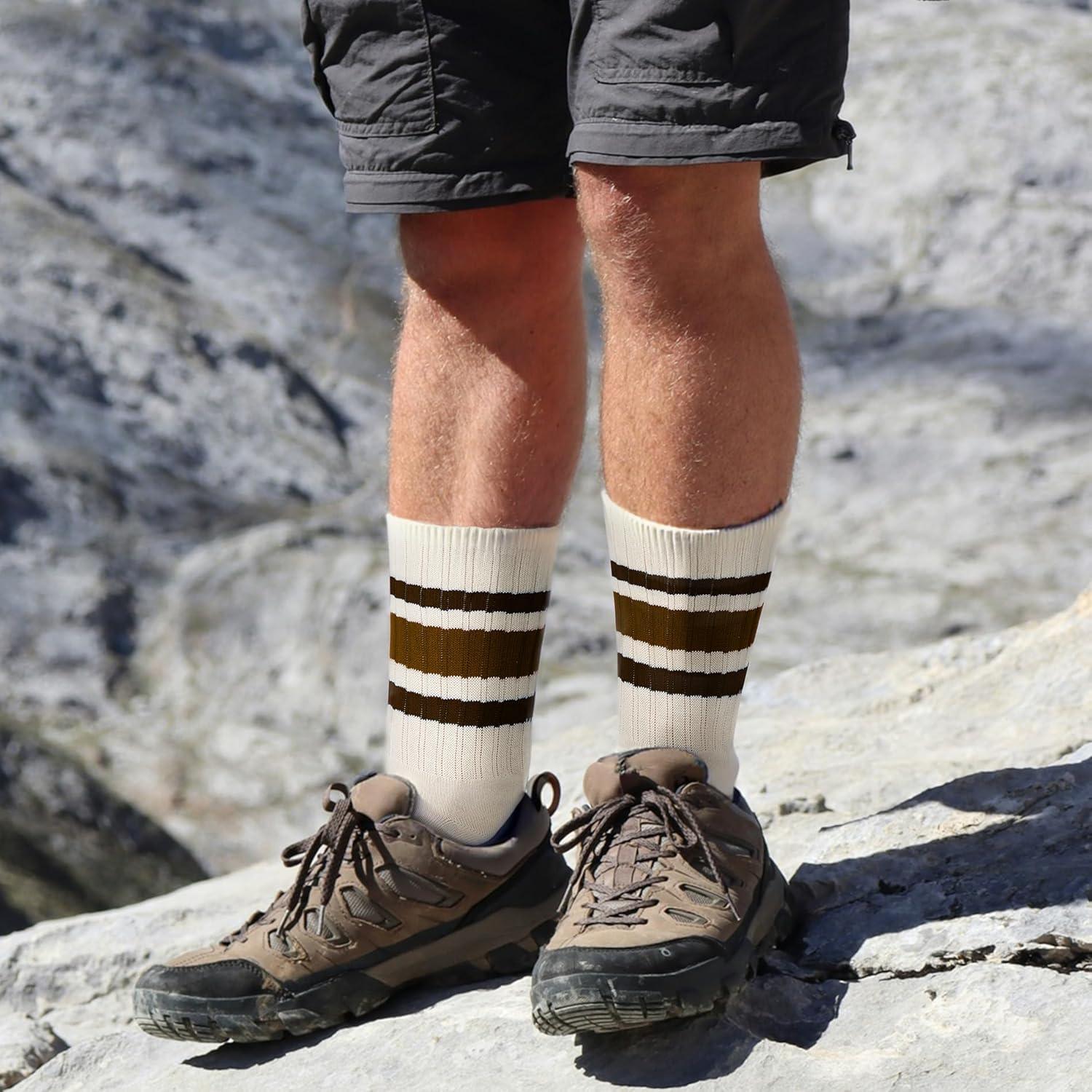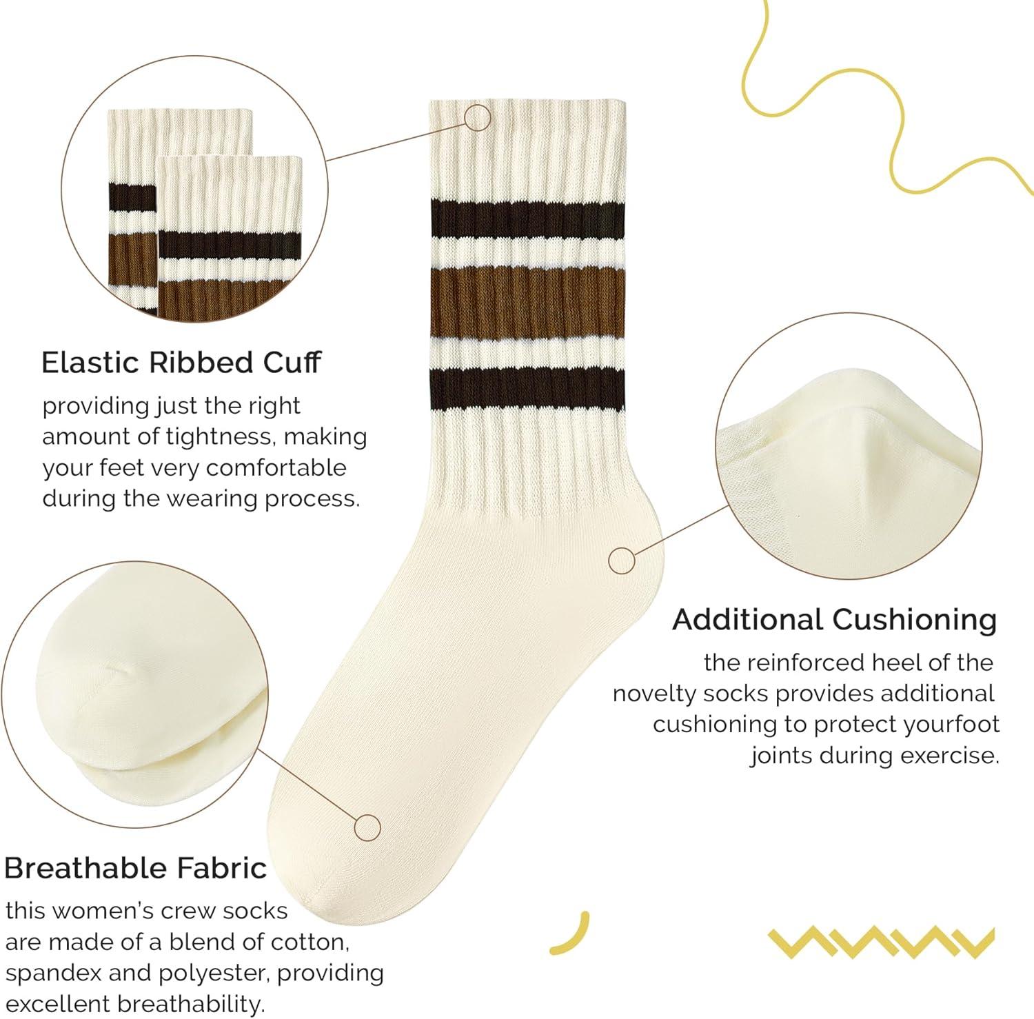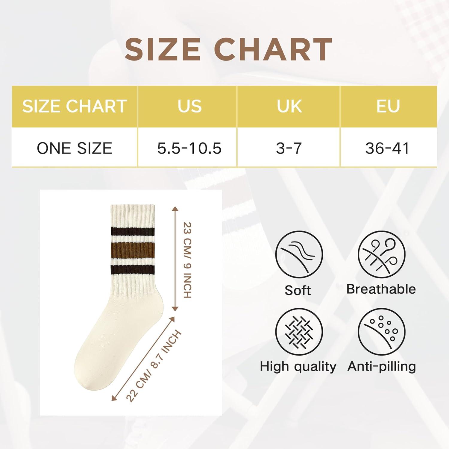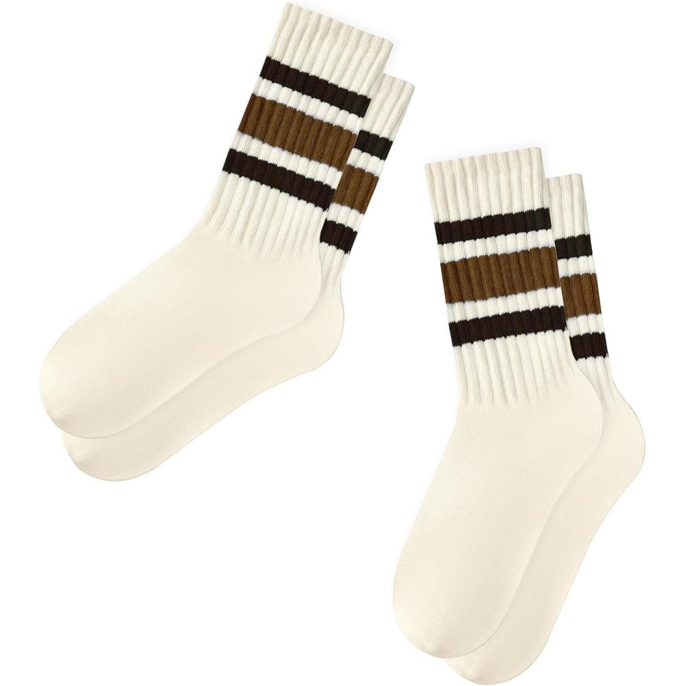 American Trends Womens Striped Socks Retro Crew Socks Women Slouchy Athletic Calf Tube Socks(2pack-brown Striped)
