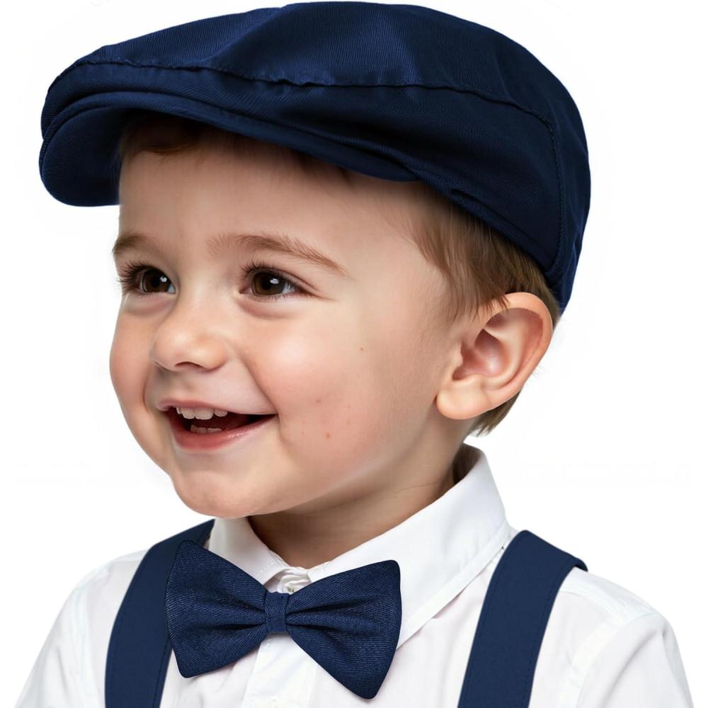 Boy Hat Newsboy Cap 2pcs Vintage Drivers Cap with Adjustable Bow Tie Infant Beret Flat Hat(Navy Blue)