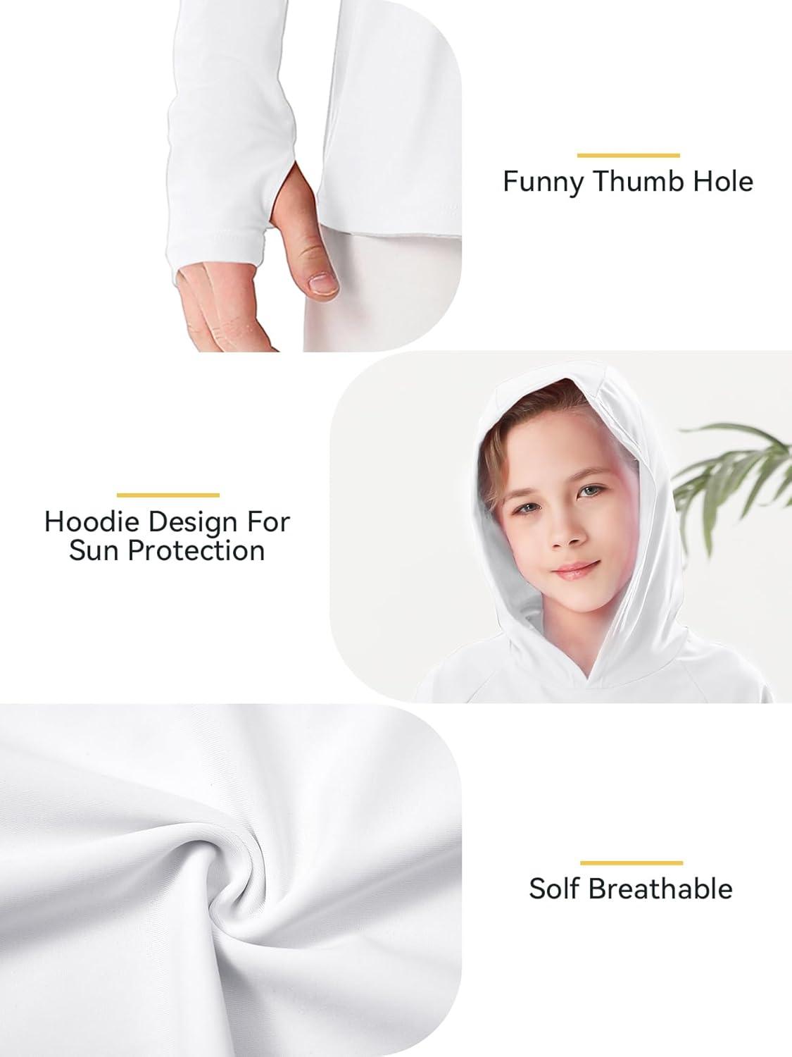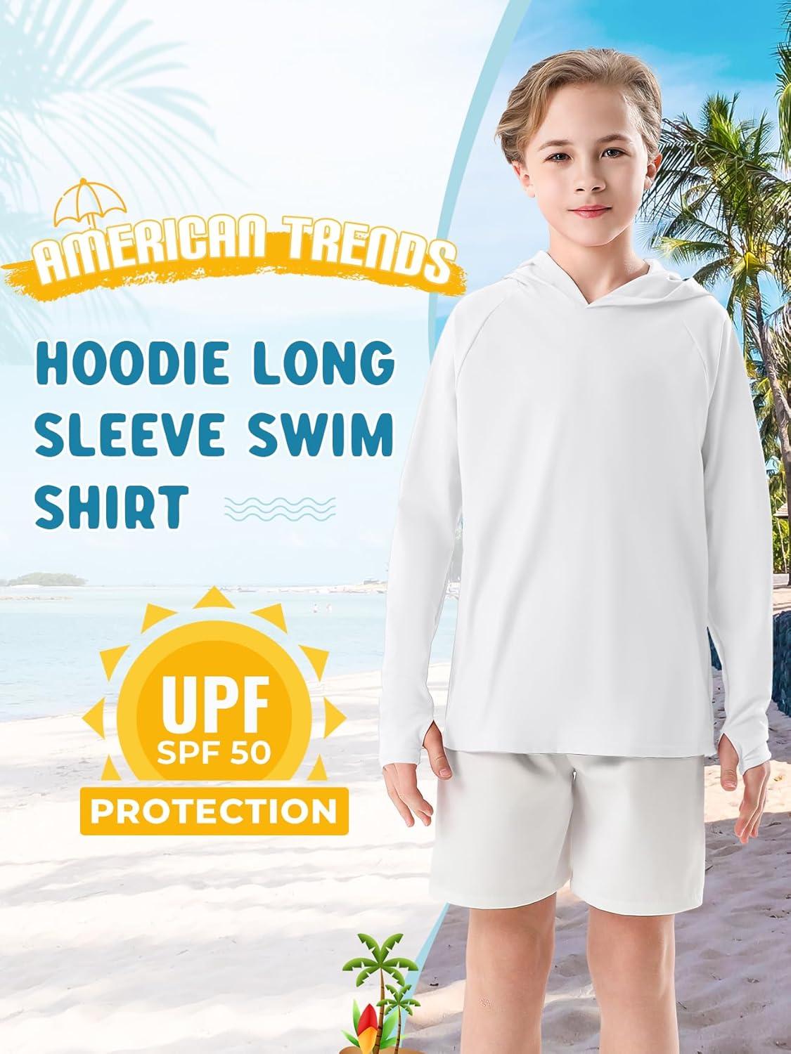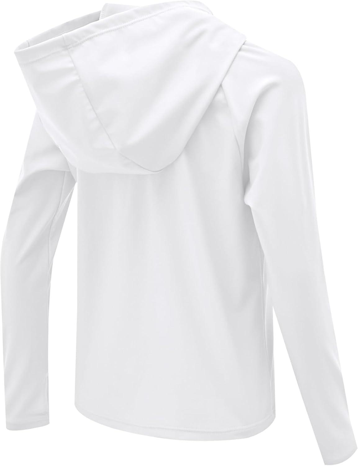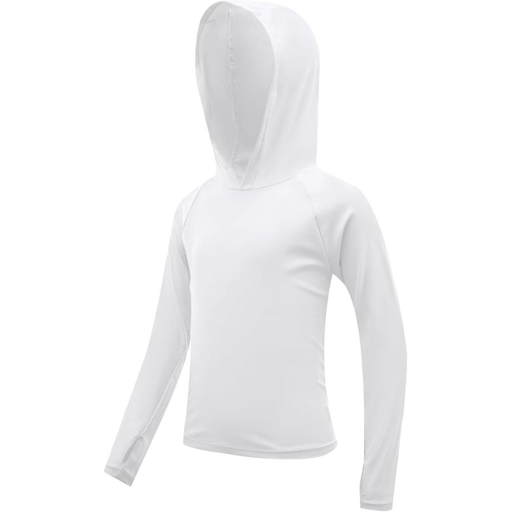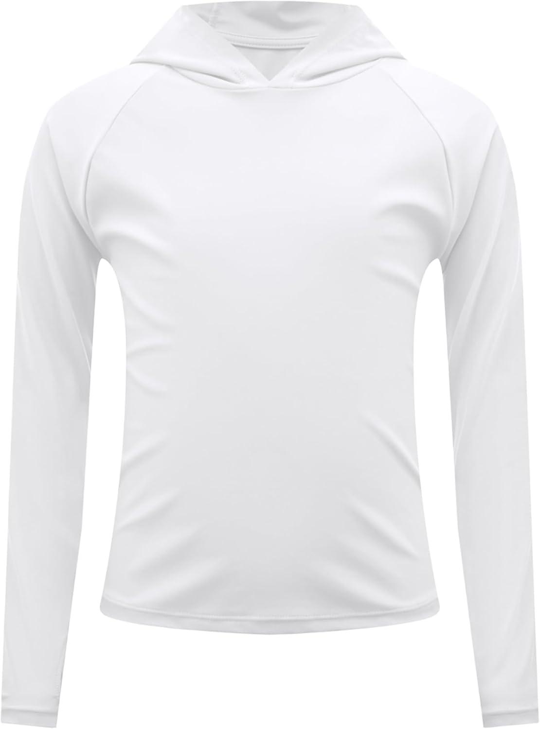 Boys Rash Guard Swim Shirts Toddler Kids Long Sleeve Hoodie UPF 50+ Sun Protection Swim Top Fishing Shirt with Thumb Hole(White)