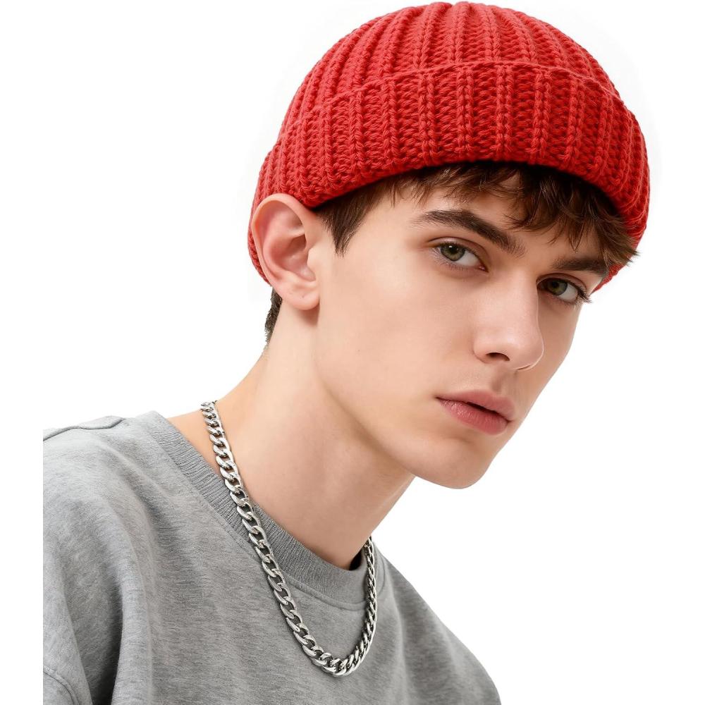Fisherman Beanie Mens Winter Hat – Stretch Fit Skull Cap Warm Knit Hats for Skiing, Hiking, Camping(Red)