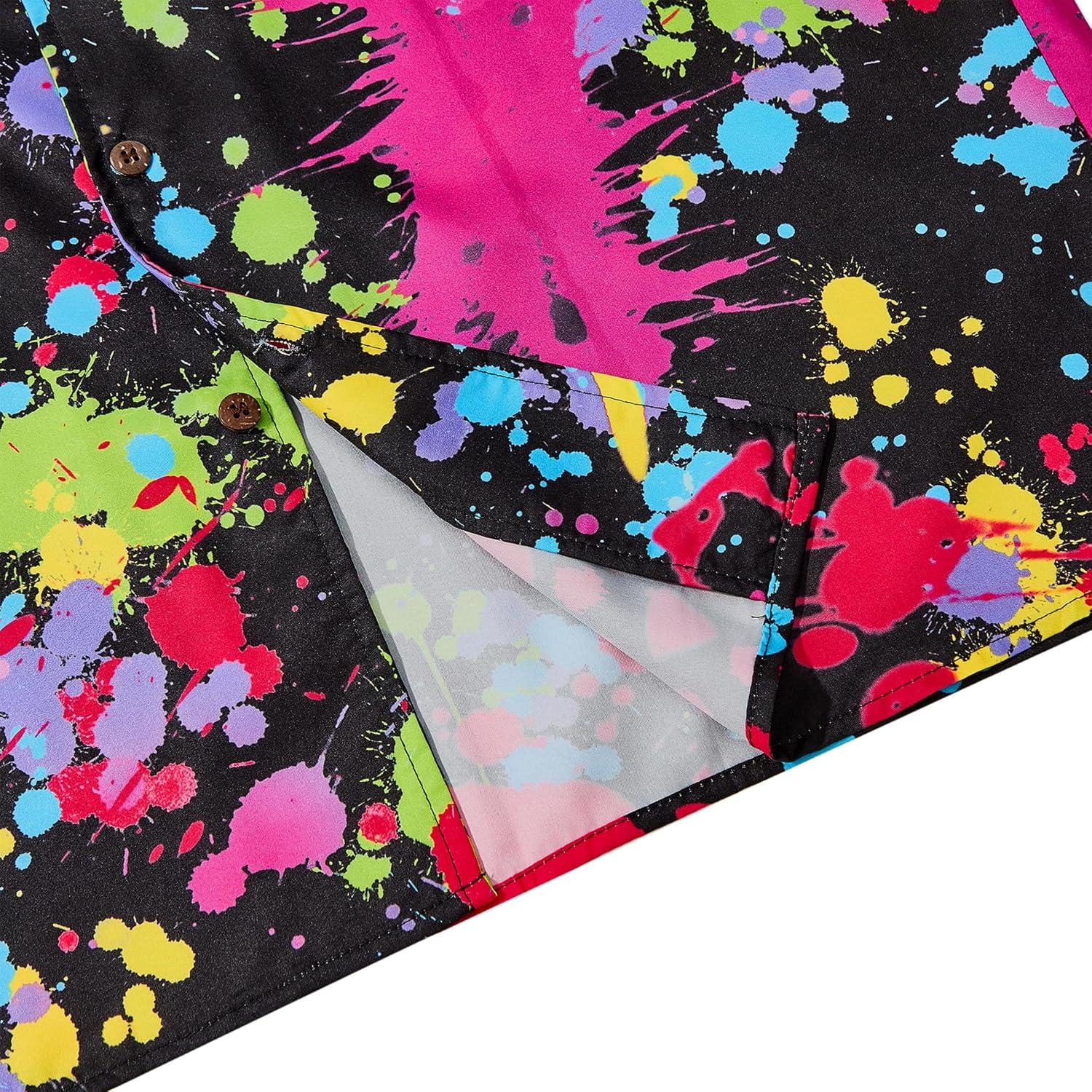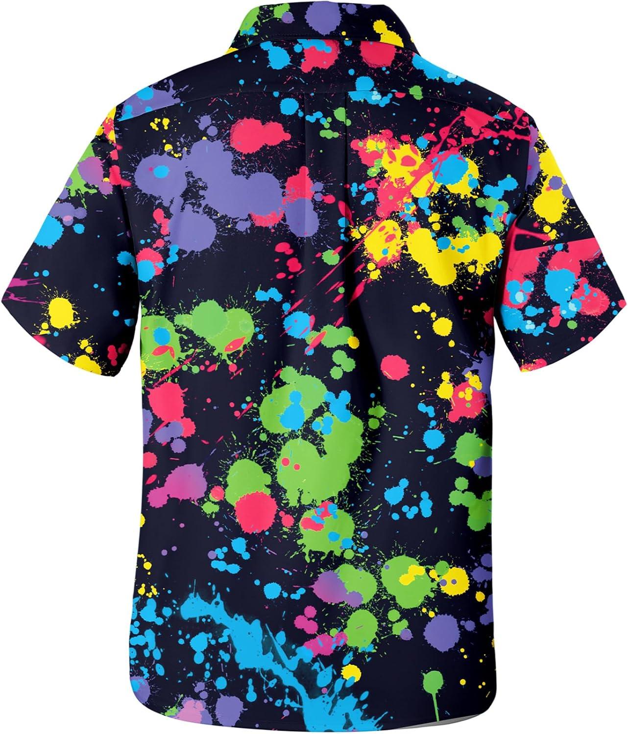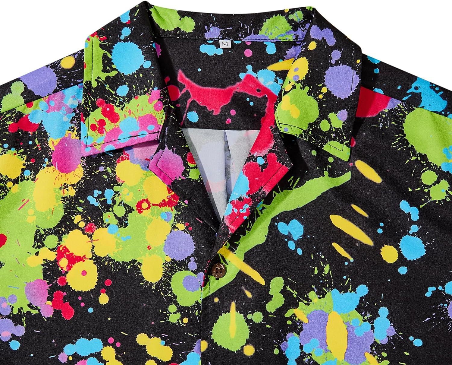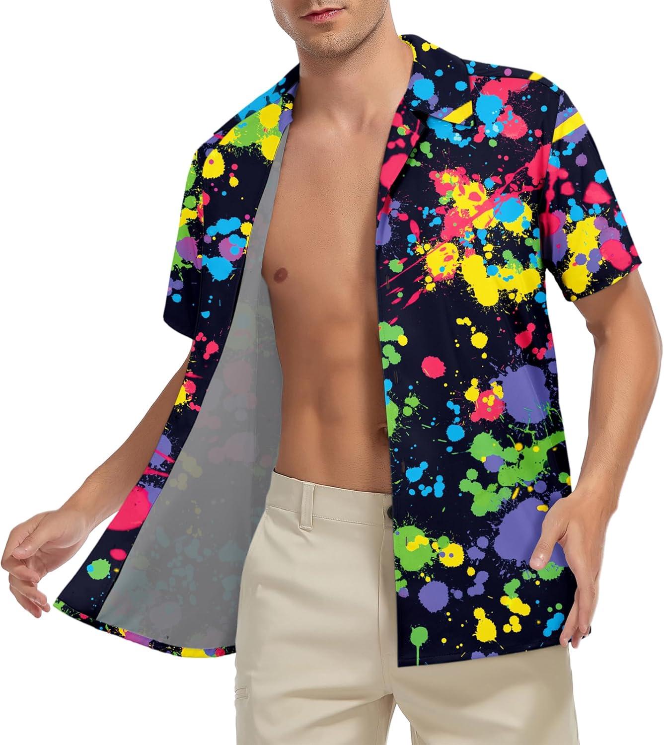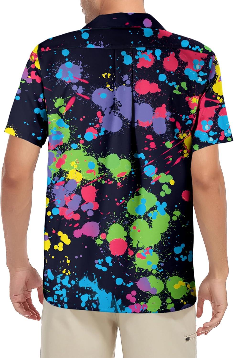 Hawaiian Shirt for Men Button Down Short Sleeve Casual Beach Shirt Summer Wear Stylish Tropical Print Shirts(Black Neon Splatter)