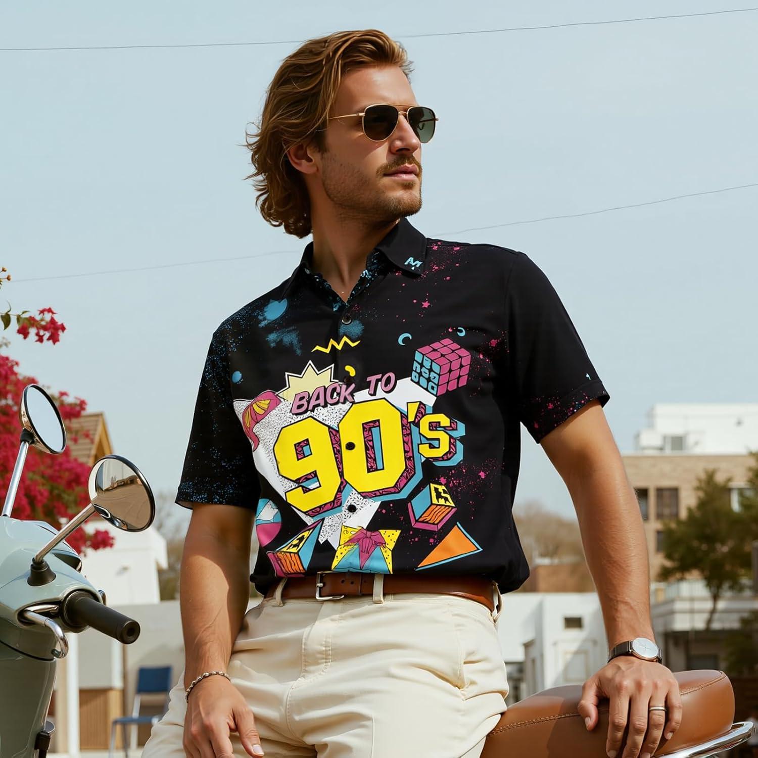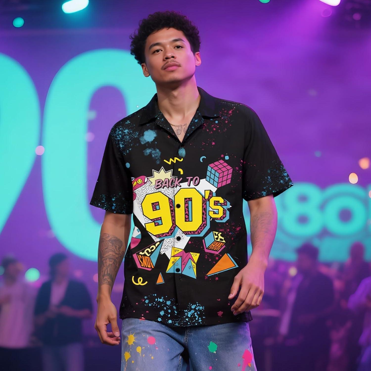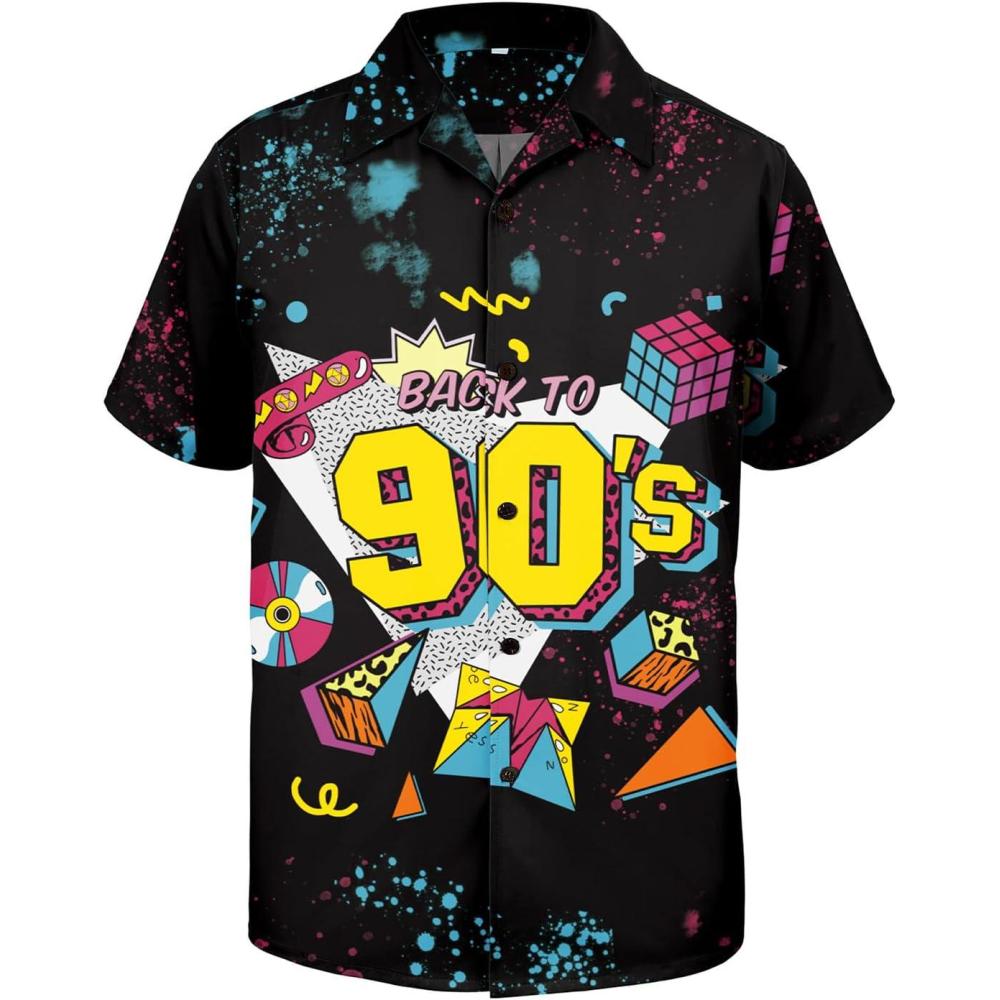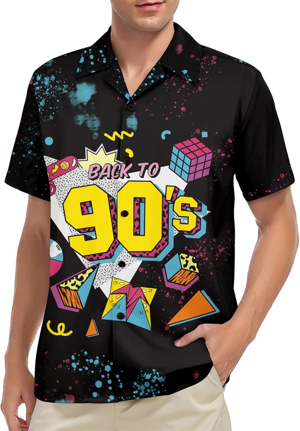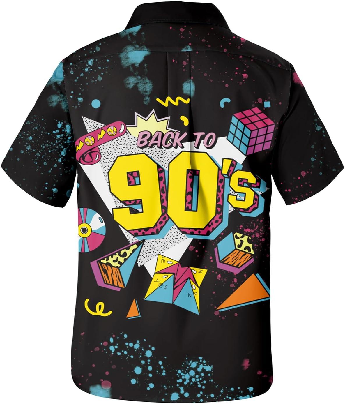Hawaiian Shirt for Men Button Down Short Sleeve Casual Beach Shirt Summer Wear Stylish Tropical Print Shirts(Vintage 90s)